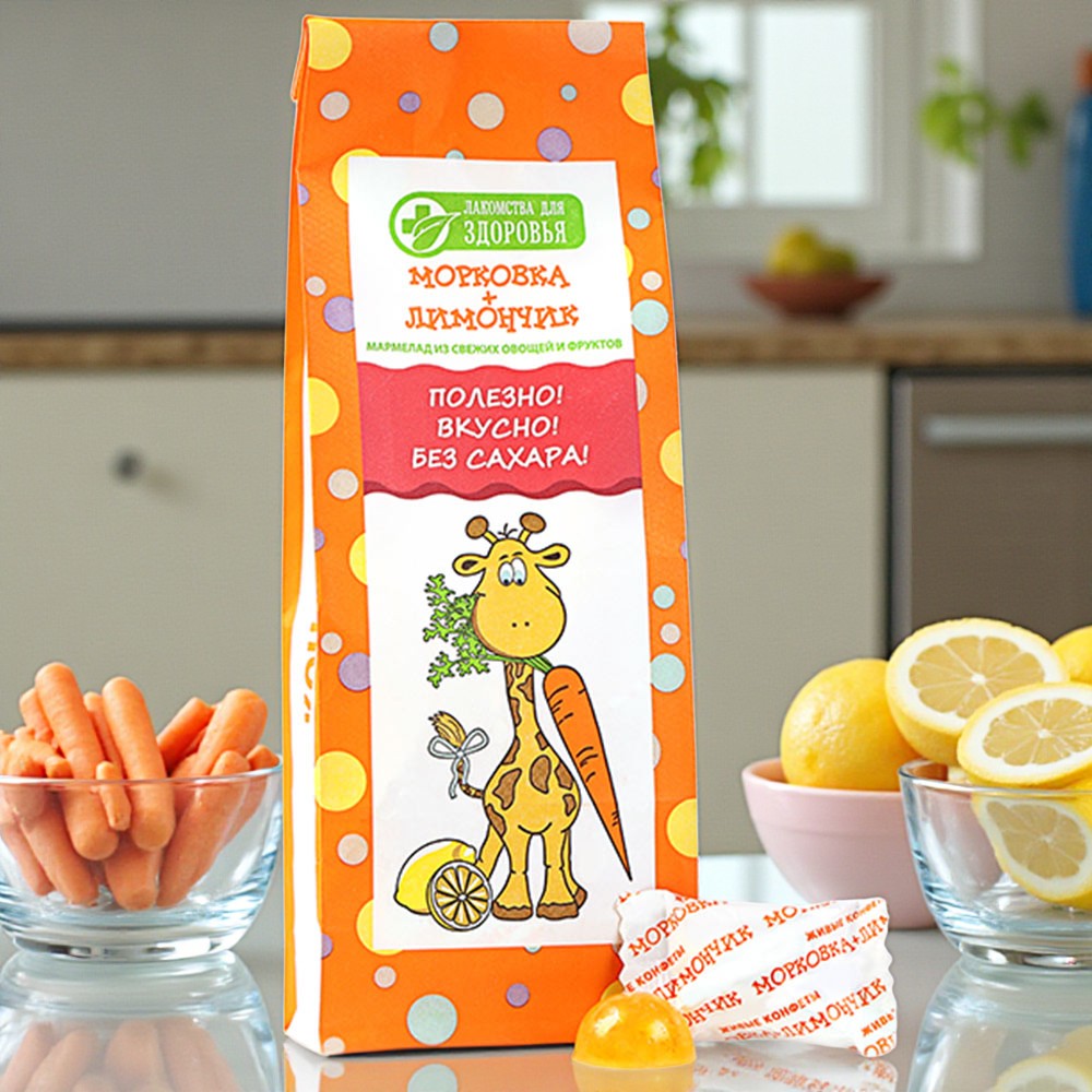 Все дети любят сладости и мармелад «Морковка + Лимончик» лучшее тому подтверждение.