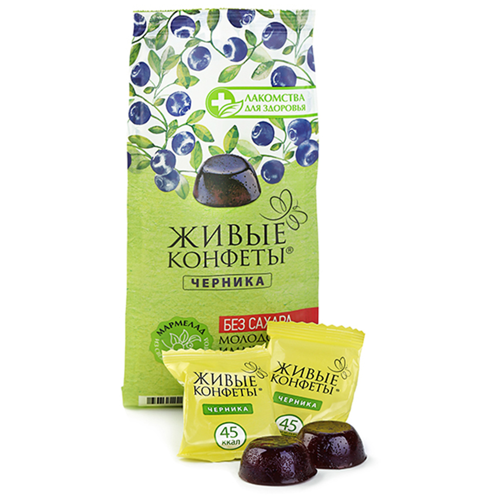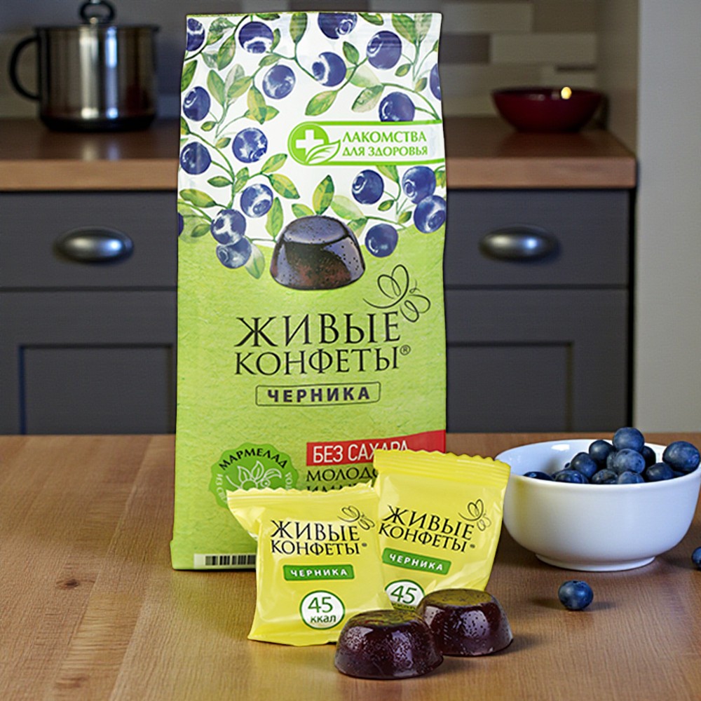 «Живые конфеты» со вкусом черники обладают противовоспалительным действием и используются в качестве дополнительного источника необходимых минеральных веществ при лечении многих заболеваний.