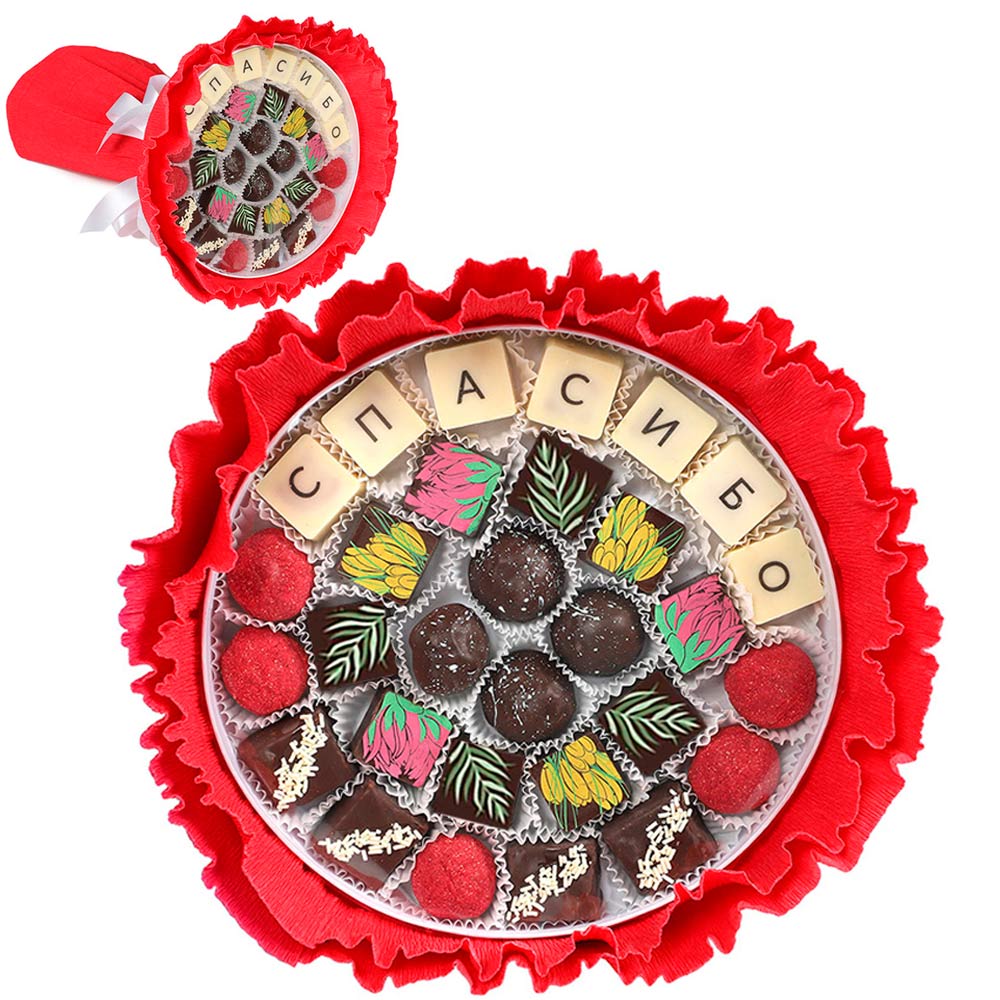 «Конфаэль» поможет вам, предложив особый набор из вкуснейших конфет, упакованных в виде охапки невиданных цветов.