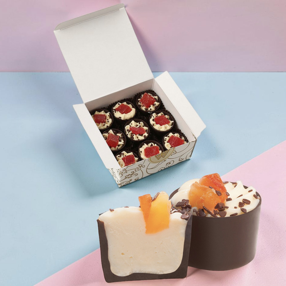 Греческий остров - шоколадный стаканчик с начинкой из апельсиново-шоколадного крема, украшенная цукатом из папайи