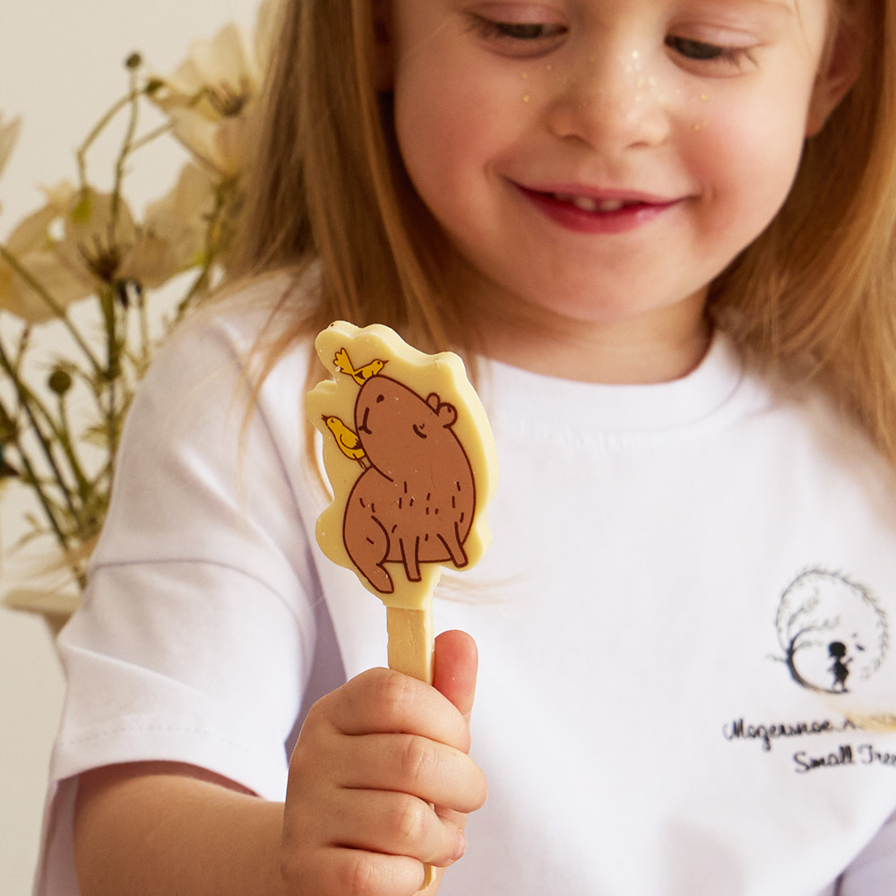 Леденец из белого шоколада в форме капибар - это необычное и вкусное лакомство, которое порадует любителей шоколада и оригинальных сладостей. Каждая конфета представляет собой миниатюрную копию этого крупного грызуна, выполненную из высококачественного шоколада.