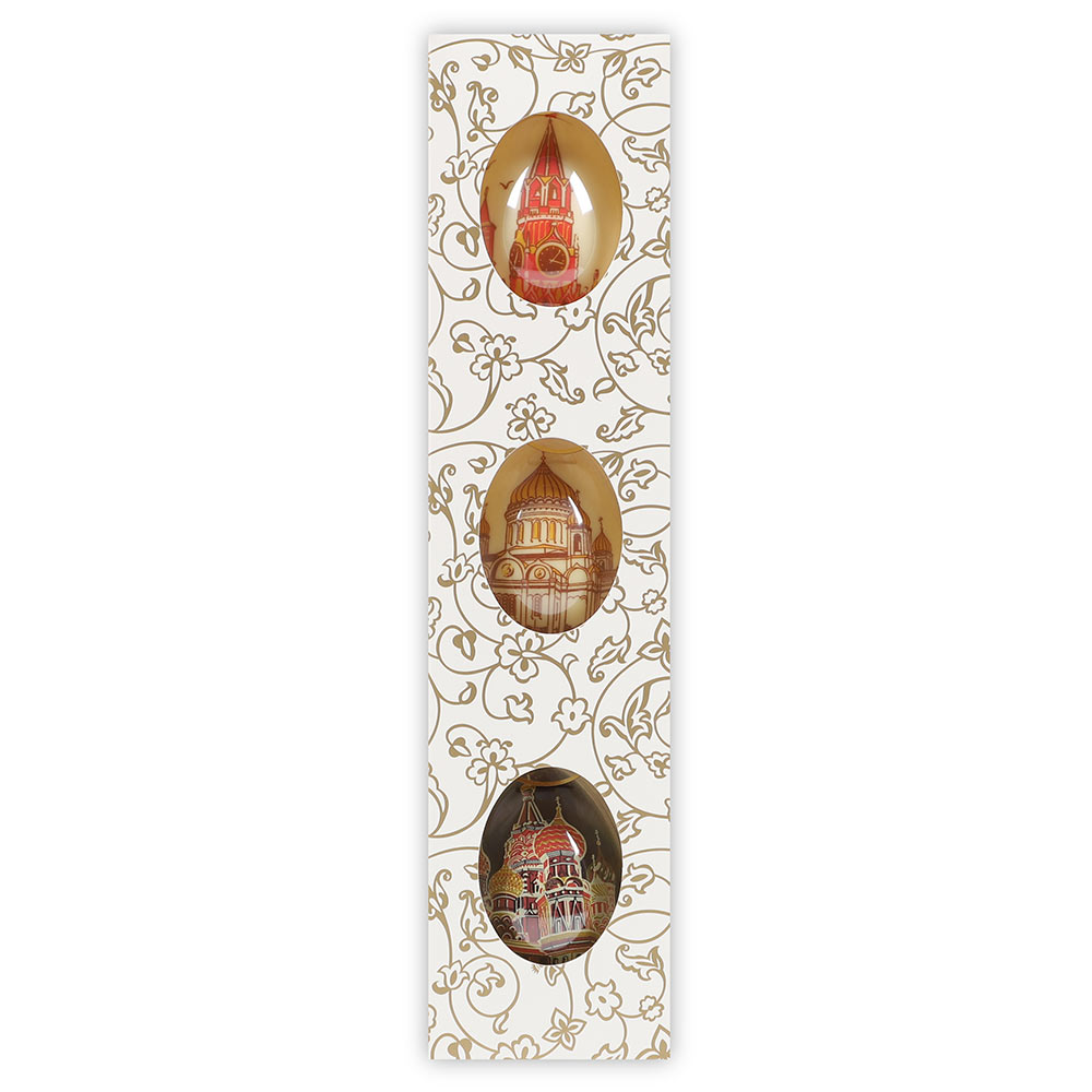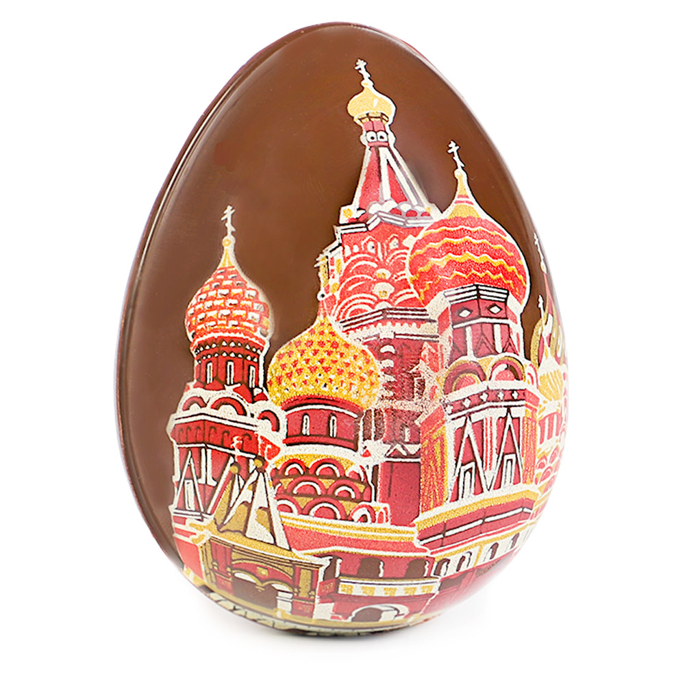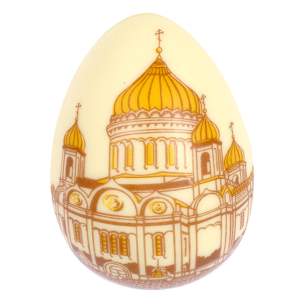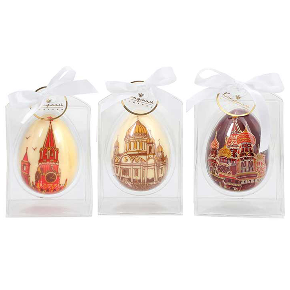 Набор пасхальных яиц из молочного шоколада, покрытого художественной росписью из сладкого декора. Станет эффектным украшением вашего праздничного стола.