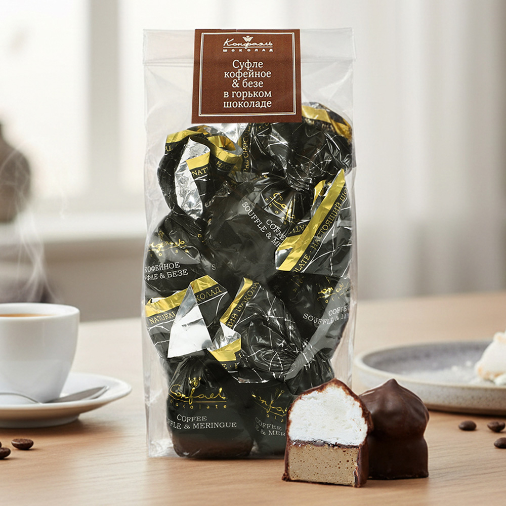 Сочетание кофейного суфле и воздушного безе в горьком шоколаде - классика восхитительных вкусов!