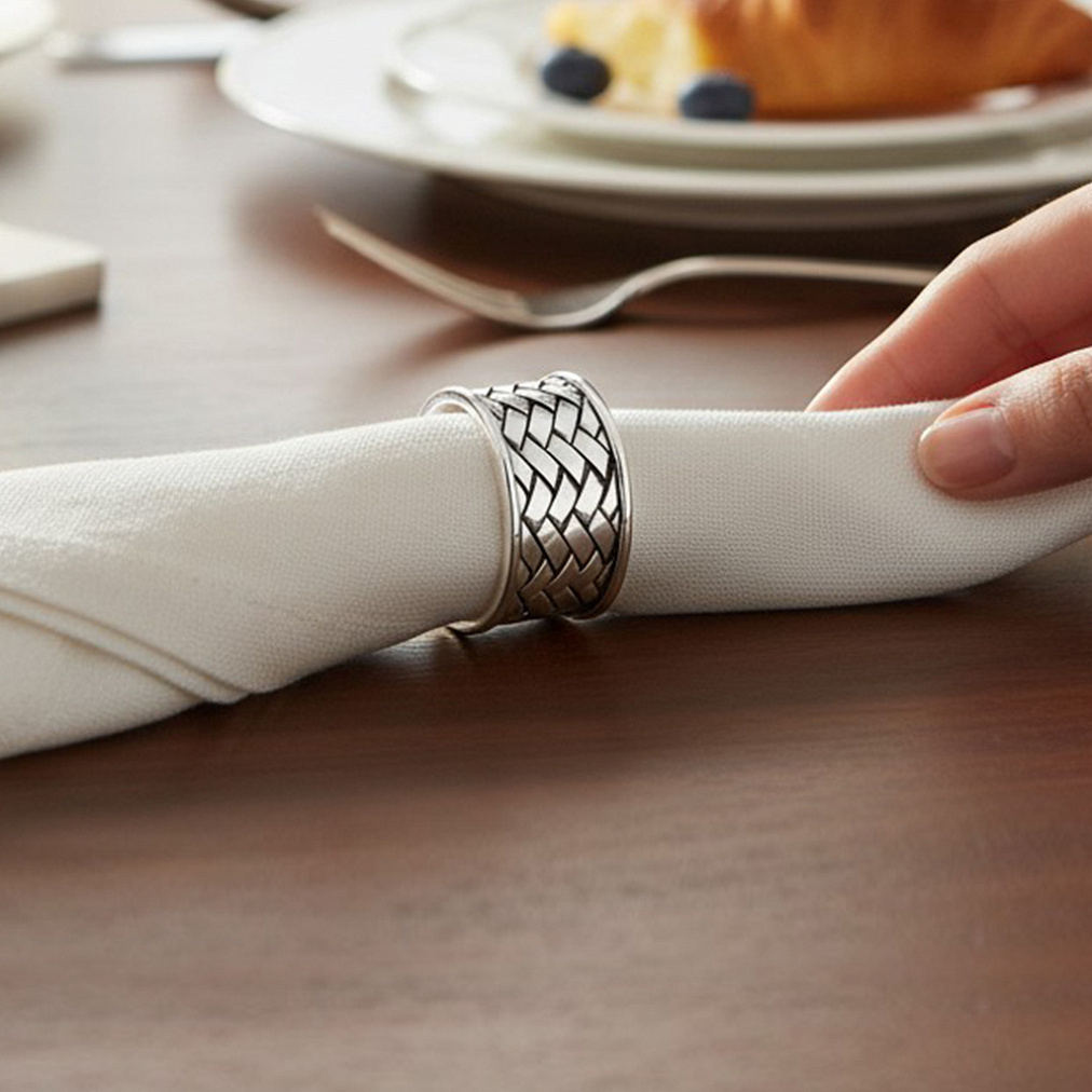 Создайте атмосферу изысканности и роскоши с кольцом на салфетку из серебра. Убедитесь сами, насколько значимым становится внимание к деталям!