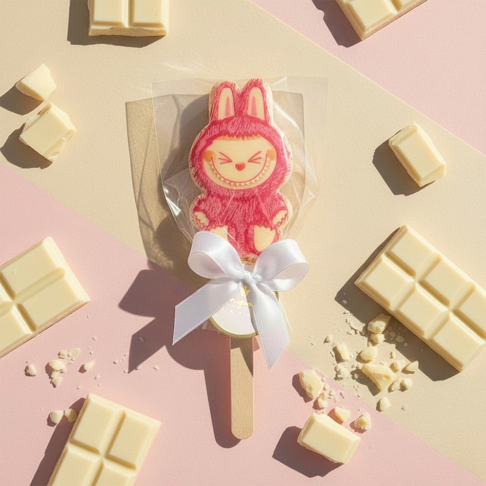 "Лабубушка" шоколад белый на палочке 19г (розовый декор)