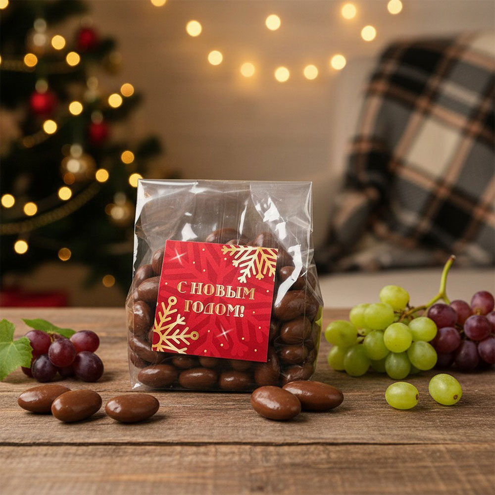 Состав: сахар, тертое какао, масло какао, сыворотка молочная сухая, пахта сухая, эмульгатор (лецитин соевый); начинки – сахар, патока, виноград сушеный, какао-порошок, ароматизаторы, декор – глазирователь (капол). Внимание! Продукция производится на предприятии, где используются арахис, кунжут, орехи, яичные и молочные продукты, злаки, содержащие глютен.