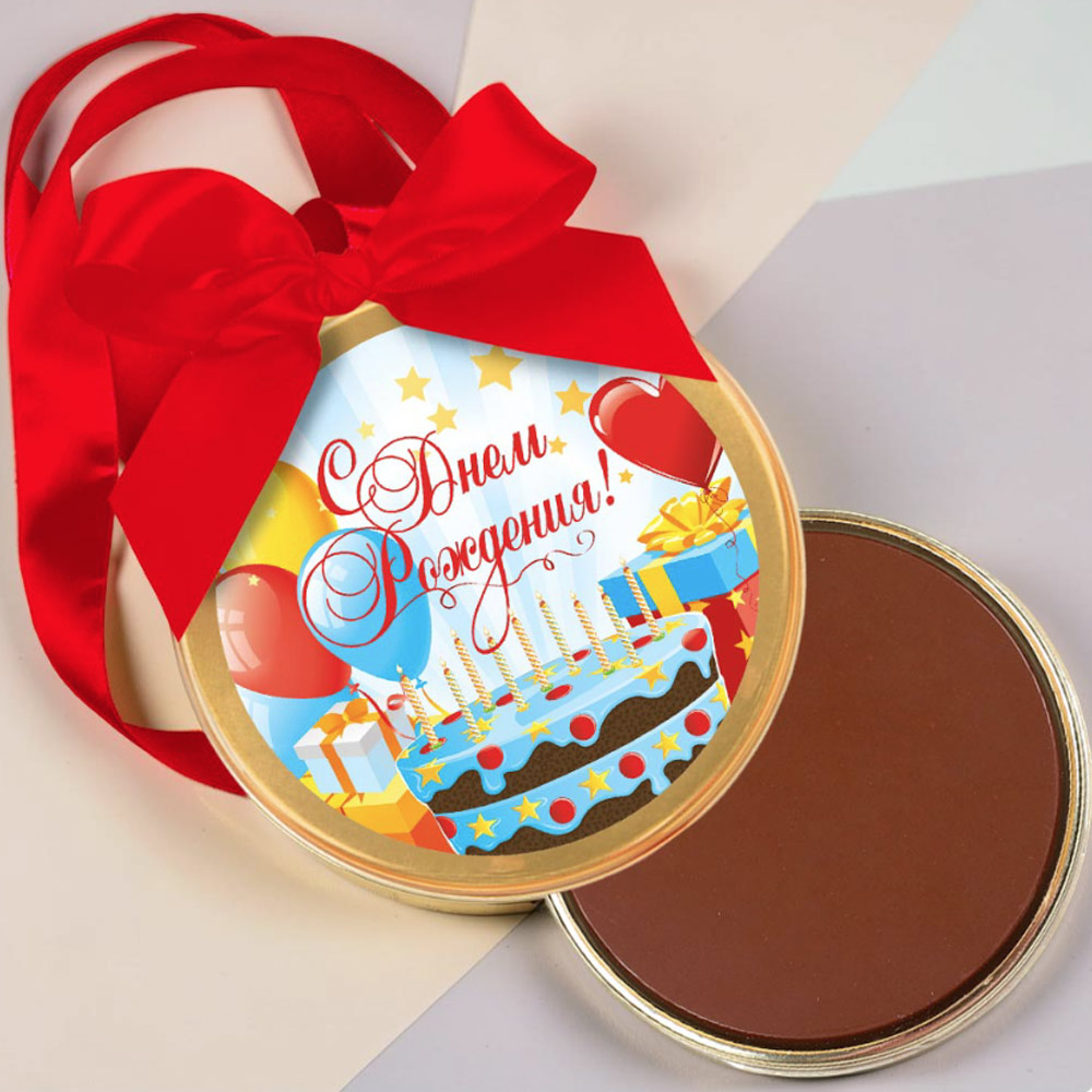 Порадуйте именинника сладким мини-шедевром – изысканной медалью из премиального молочного шоколада! Это не просто десерт, а трогательный знак внимания, который превратит обычное поздравление в маленький праздник.