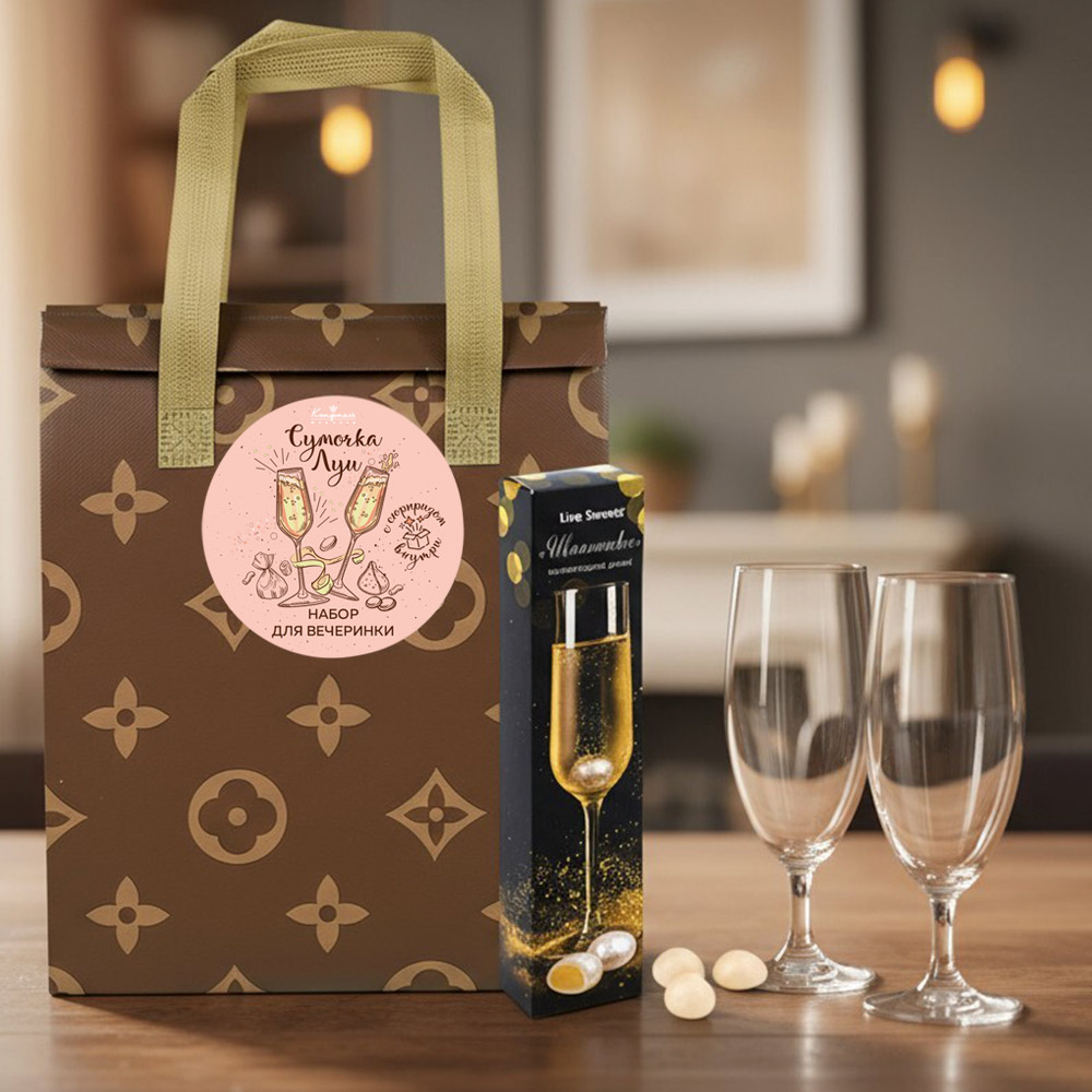 Набор для вечеринки: 2 бокала для шампанского, драже со вкусом шампанского 100г