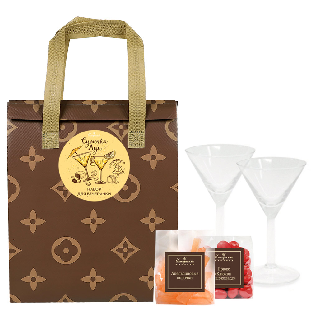 Набор для вечеринки: 2 коктейльных бокала, драже клюква, цукаты апельсиновые 195г
