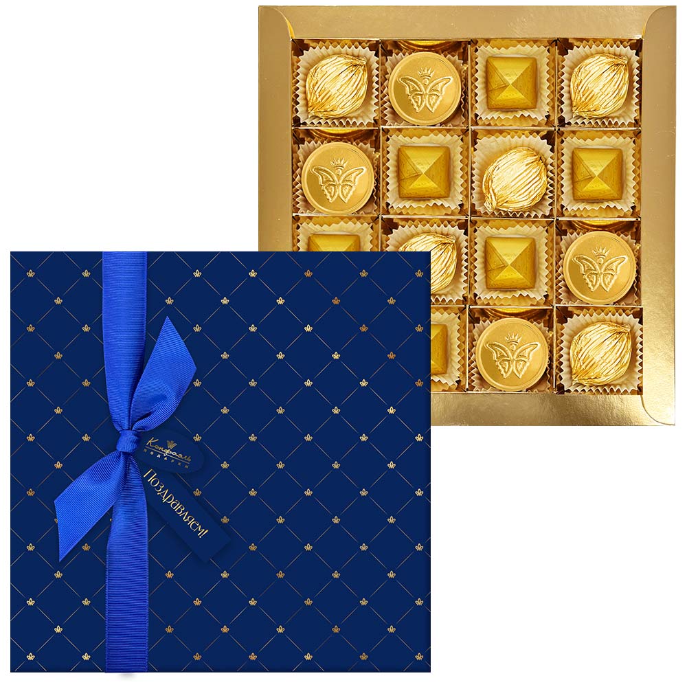 Состав: шоколад - сахар, какао тёртое, масло какао, эмульгатор (лецитин соевый), ароматизатор; начинки - марципановая масса, коньяк (дистиллят коньячный, вода, сахар, пищевой краситель (сахарный колер)), консервант (сорбиновая кислота), регулятор кислотности (лимонная кислота), ароматизаторы.