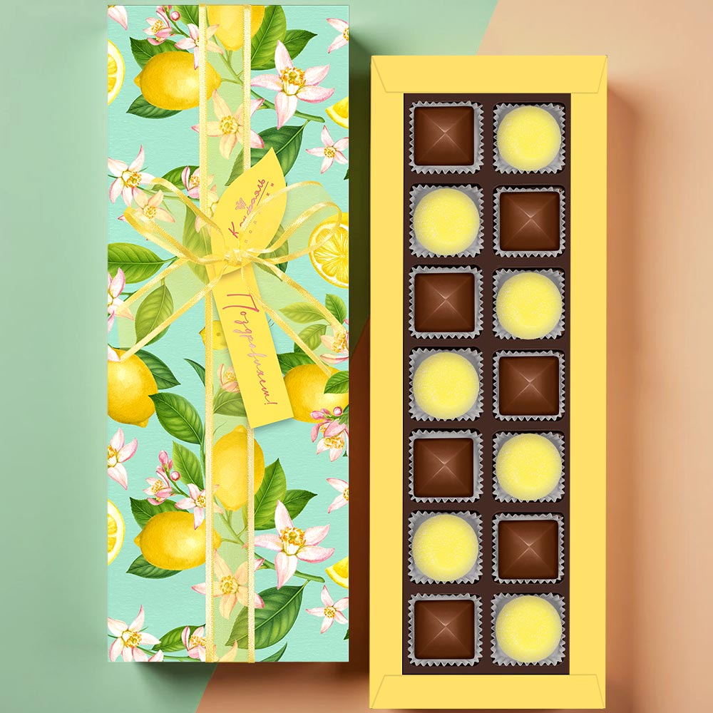Состав: шоколад - сахар, масло какао, сыворотка молочная сухая, сухое цельное молоко, какао тёртое, эмульгатор (лецитин соевый), ароматизаторы; начинки - сахар, патока, какао-масло, какао тертое, молоко сгущенное (молоко цельное, сахар (сахароза, лактоза)), стабилизаторы (мальтодекстрин), желирующий агент (агар), желатин говяжий, коньяк (дистиллят коньячный, вода, сахар, пищевой краситель (сахарный колер)), спирт этиловый ректификованный, консервант (сорбиновая кислота), регулятор кислотности (лимонная кислота), эмульгаторы (лецитин соевый, Е471), ароматизаторы, пищевые красители (Е171, куркумин).