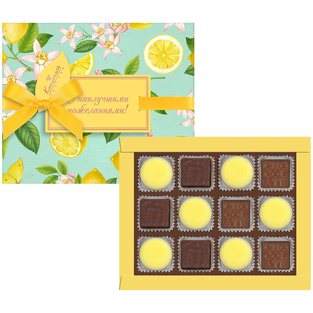 Набор шоколадных конфет , мармелад со вкусом «Банан», суфле лимонное в горьком шоколаде 150г