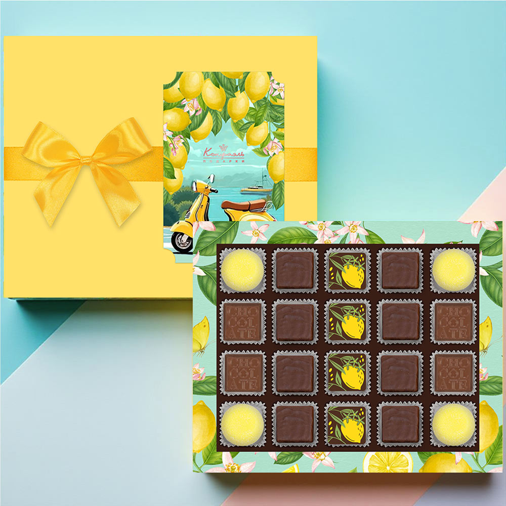 Набор шоколадных конфет, суфле лимонного в горьком шоколаде 175г
