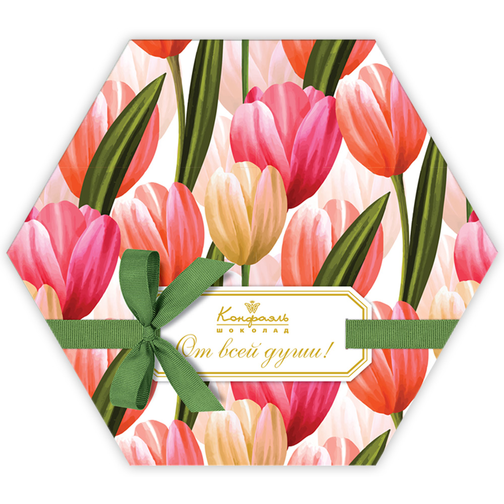 Состав: шоколадная масса – сахар, тертое какао, масло какао, какао-порошок, эмульгатор (лецитин соевый), натуральная ваниль; начинки - сахар, патока, молоко сгущенное (молоко цельное, сахар (сахароза, лактоза)), масло сладко-сливочное, какао-порошок, желирующий агент (агар), яичный белок, регулятор кислотности (лимонная кислота), консервант (сорбиновая кислота), эмульгаторы (Е471), ароматизаторы, натуральный пищевой краситель («сахарный колер»); натуральный экстракт ванили, натуральный экстракт кофе. Продукция производится на предприятии, где используются арахис, кунжут, орехи, яичные и молочные продукты, злаки, содержащие глютен