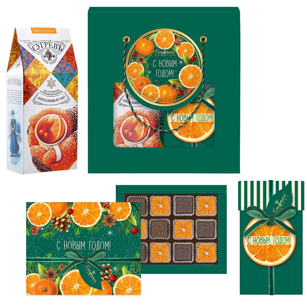 Поздравление 12/ Шоколадные конфеты «Ассорти» с кремовыми начинками и декором, конфеты «Суфле» в горьком шоколаде (апельсиновое) / 95 г
