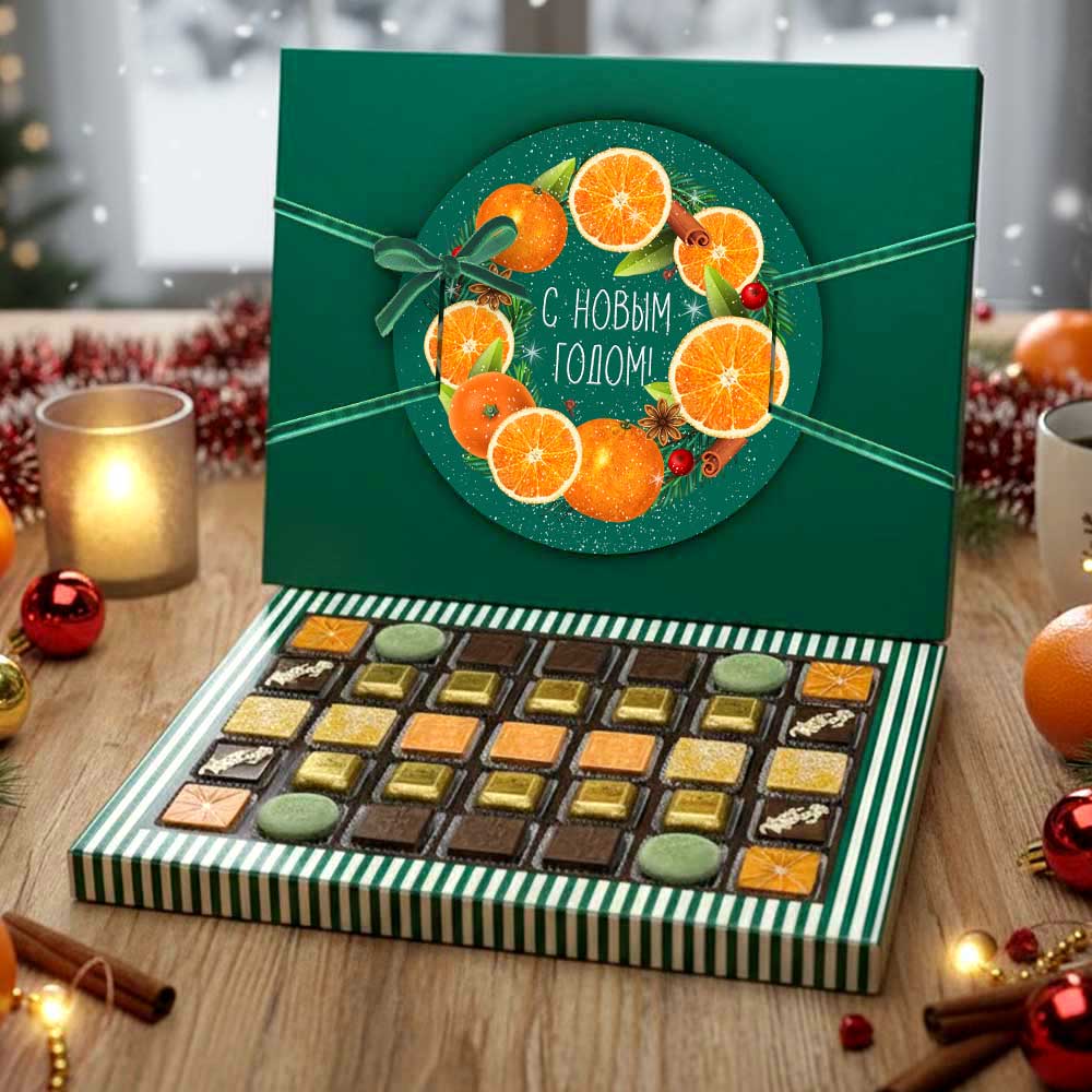 Мармелад желейный «Апельсиновый», "Ассорти" молочный шоколад с кремовой начинкой со вкусом фисташки с вафельной крошкой,