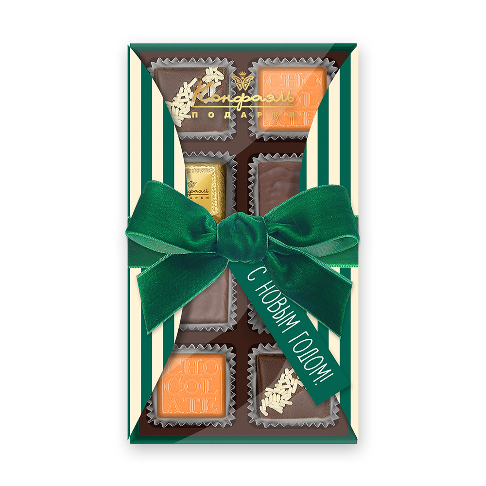 Состав: шоколадные массы – сахар, масло какао, молоко цельное сухое, сухое обезжиренное молоко, какао тертое, какао-порошок, сыворотка молочная сухая, пахта сухая, молочный жир, паста ореховая из ядер фундука, эмульгаторы (соевый лецитин, Е476), соль, натуральная ваниль, ароматизаторы; начинки – сахар, патока, белок яичный порошкообразный, молоко сухое, масла растительные рафинированные дезодорированные (подсолнечное, рапсовое, оливковое; масло сладко-сливочное, молоко сухое обезжиренное), молоко сгущенное (молоко цельное, сахар (сахароза, лактоза)), масло сладко - сливочное, какао тертое, какао масло, клубника сушеная, кумкват сушеный, цукаты лимонных корочек, папайя сушеная, ананас сушеный, финики, чернослив, абрикос сушеный, ядра орехов фундука, ядра орехов миндаля, стабилизатор (мальтодекстрин), желирующий агент (агар), коньяк (дистиллят коньячный, вода, сахар, пищевой краситель «Карамельный колер""), спирт этиловый ректификованный, консервант (сорбиновая кислота), регулятор кислотности (лимонная кислота), эмульгаторы (лецитин соевый, Е471), сухой сок моркови, сухой сок апельсина, экстракт маракуйи, ароматизатор. Внимание! В продукте возможно наличие фрагментов фруктовых косточек (кураги натуральной, фиников натуральных, чернослива натурального).