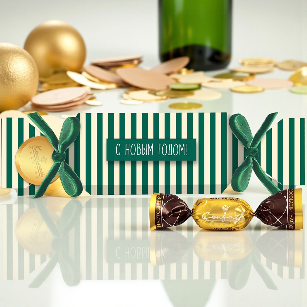 Поздравление 06 / Шоколадные конфеты «Ассорти» со сливочной начинкой, конфеты «Суфле» в горьком шоколаде (апельсиновое) / 45 г
