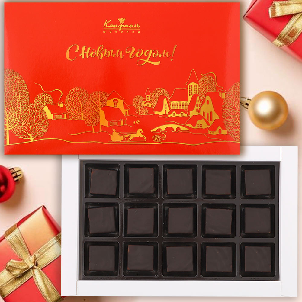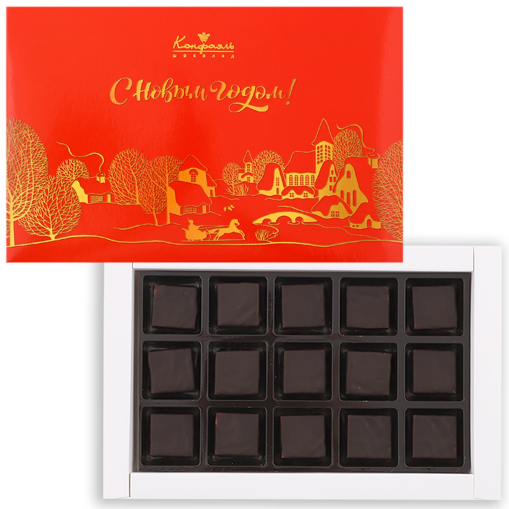 Состав: шоколадная масса - сахар, тертое какао, масло какао, какао-порошок, эмульгатор (лецитин соевый), натуральная ваниль; начинка - сахар, патока, молоко сгущенное (молоко цельное, сахар (сахароза, лактоза)), масло сладко - сливочное, белок яичный, желирующий агент (агар), консервант (сорбиновая кислота), эмульгатор (Е471), регулятор кислотности (лимонная кислота), экстракт ванили, ароматизатор. Продукция производится на предприятии, где используются арахис, кунжут, орехи, яичные и молочные продукты, злаки, содержащие глютен.