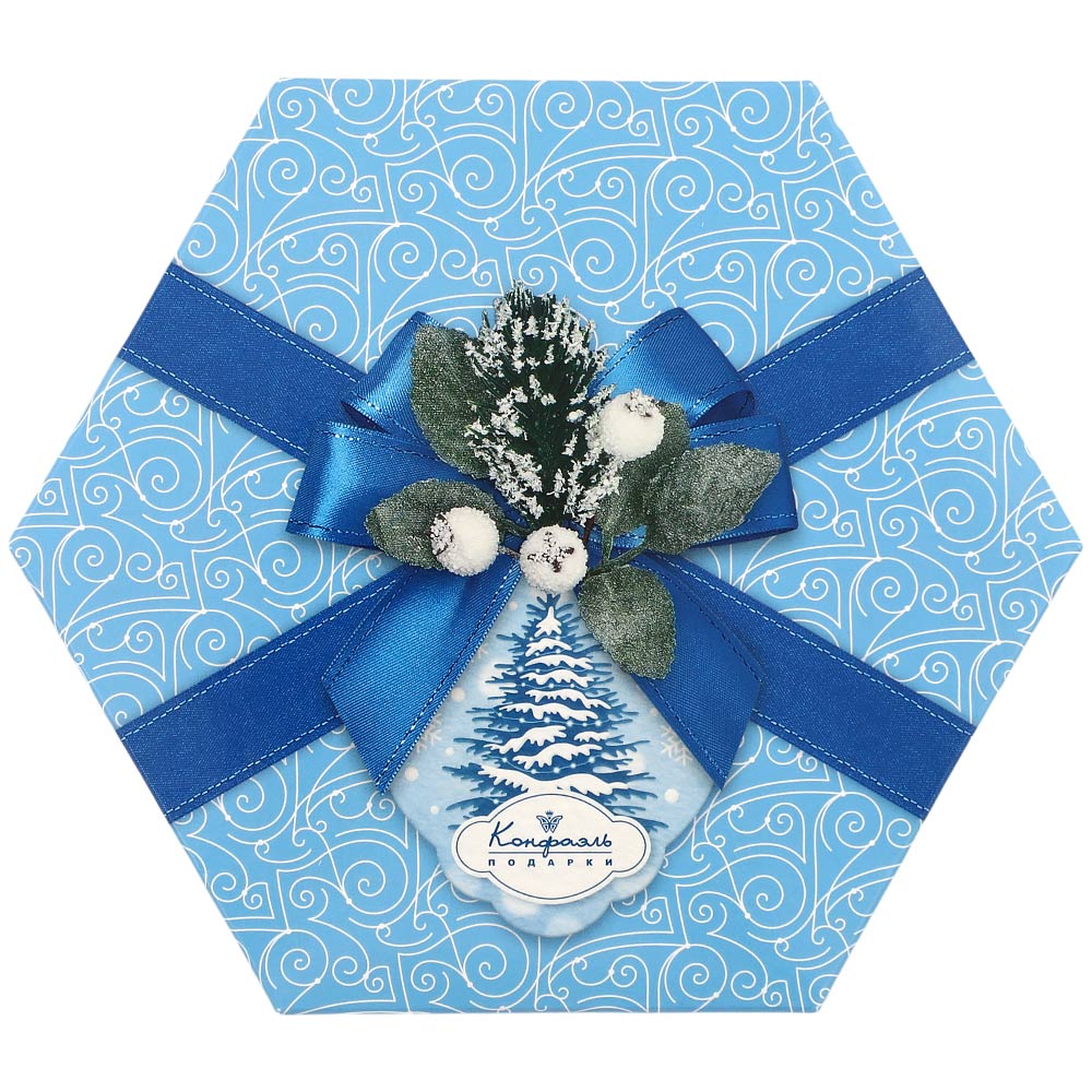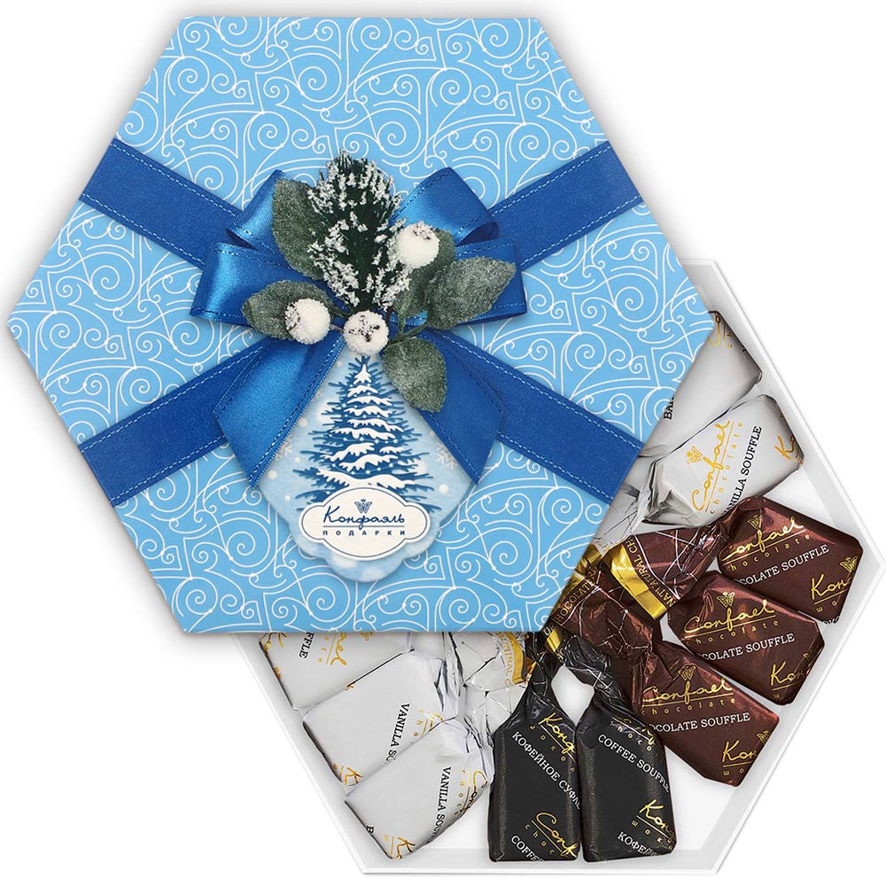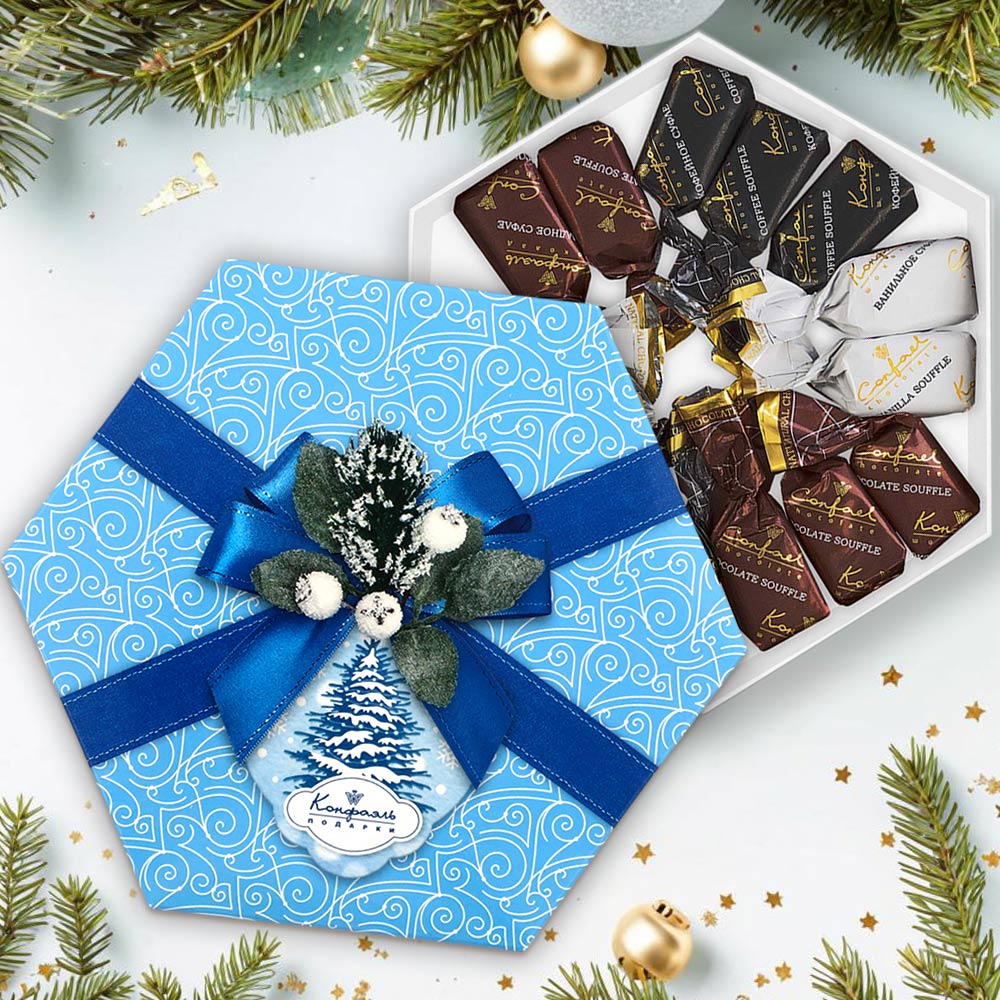 Новогодний набор конфет "Суфле" (ванильное, шоколадное, кофейное) в шоколаде 105г (голубой)