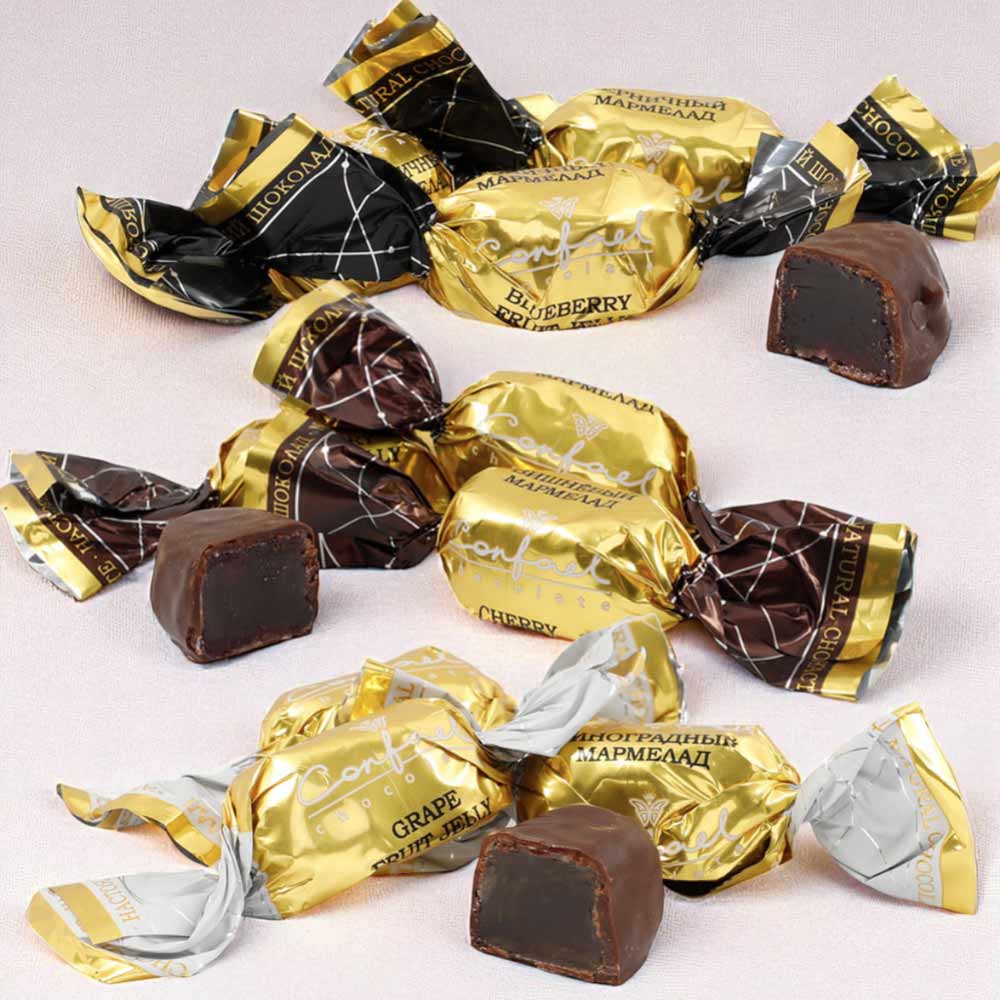 Конфеты «Желейные» в горьком шоколаде (вишневые, черничные, виноградные)