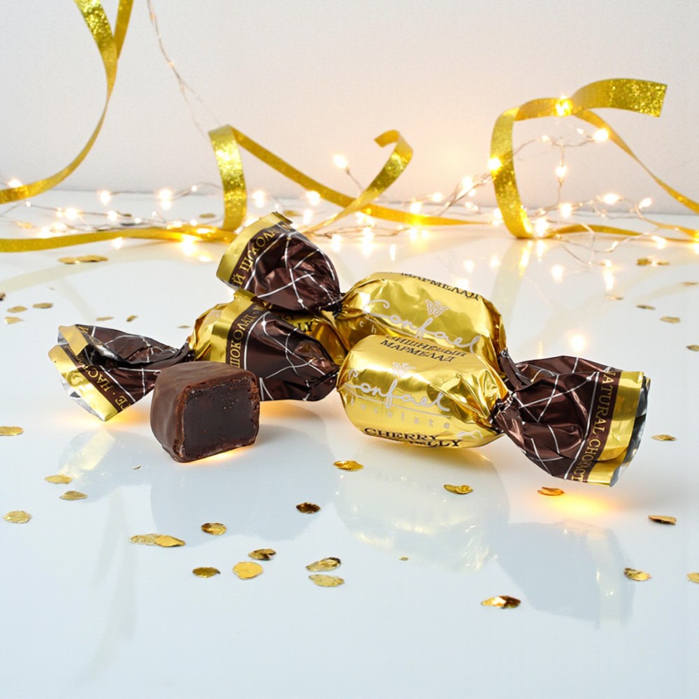 Новогодний набор мармелада вишневого в горьком шоколаде 70г