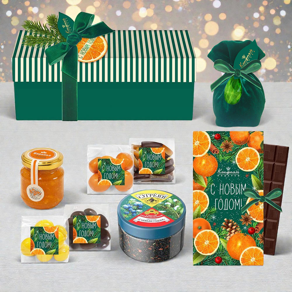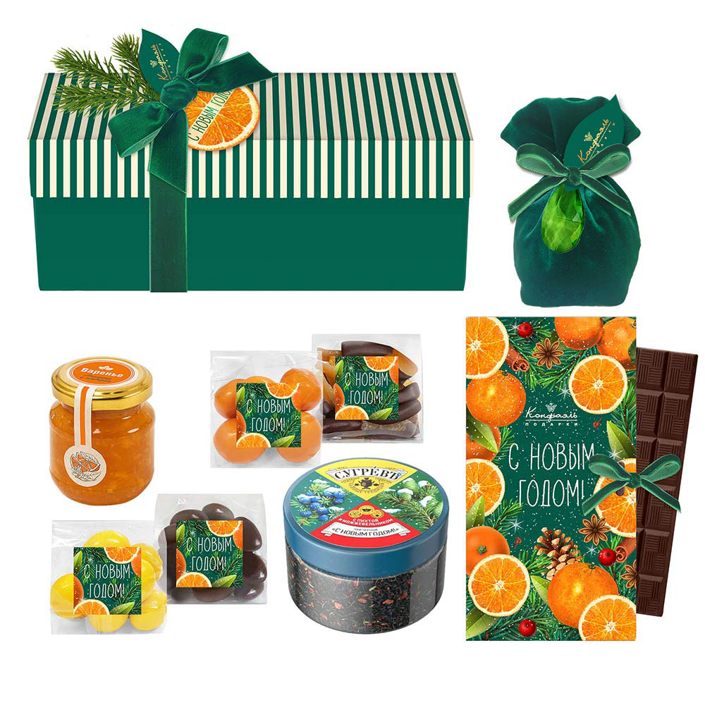 Новогодний набор шоколада и конфет: драже, ассорти, цукаты, варенье, чай 720г