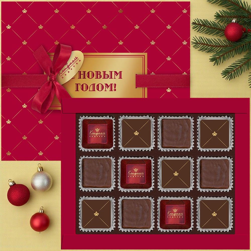 Шоколадная конфеты «Ассорти» со сливочными начинками, с кремовой начинкой и декором, конфета «Суфле» в горьком шоколаде со вкусом Просекко Розе