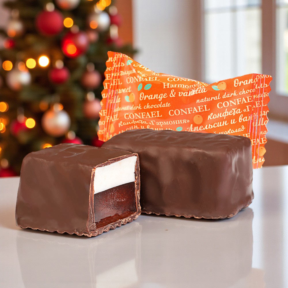"Ассорти" молочный шоколад с кремовой начинкой со вкусом фисташки с вафельной крошкой, "Ассорти" оранжевый шоколад - сливочная начинка Манго-Маракуйя, "Ассорти" белый шоколад с декором- кремовая начинка "Миндаль", "Ассорти" белый шоколад с декором- сливочная начинка, конфеты «Суфле» в горьком шоколаде (апельсиновое), шоколадные конфеты «Ассорти» со сливочными начинками(в фольге), конфеты «Мягкий грильяж» в горьком шоколаде"