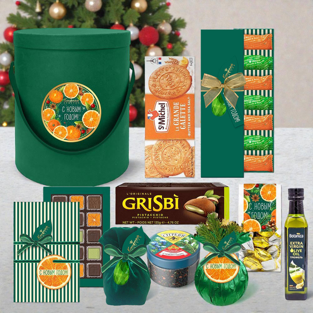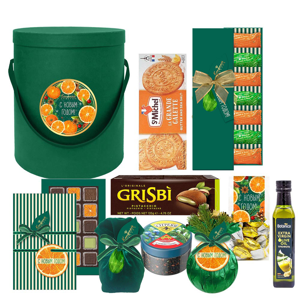 "Новогодняя коробка" набор: драже, конфеты, печенье, чай 1210г