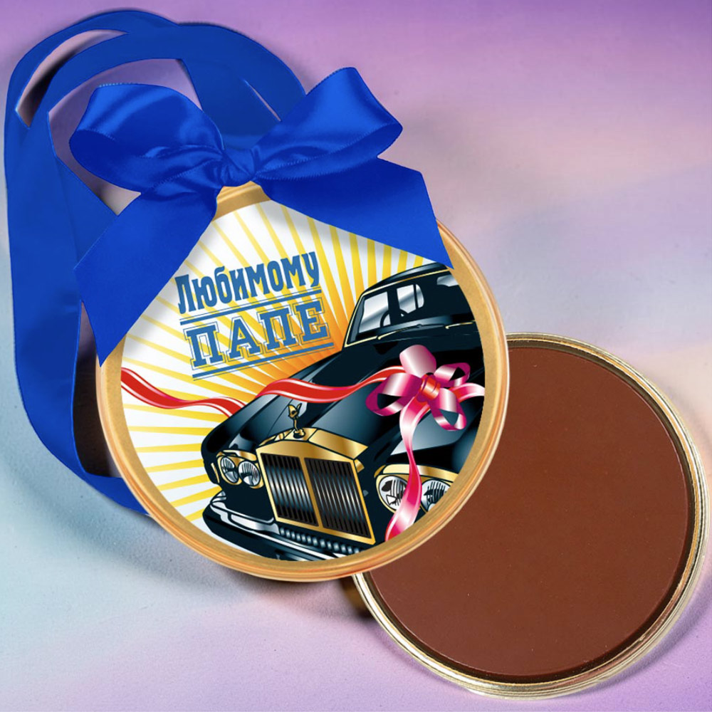 Яркая шоколадная медаль от «Конфаэль» с изображением «Роллс-Ройса» станет не просто лучшей наградой для него за любовь и ласку, которую он сможет носить на шее, но и сладким лакомством из нежнейшего молочного шоколада.
