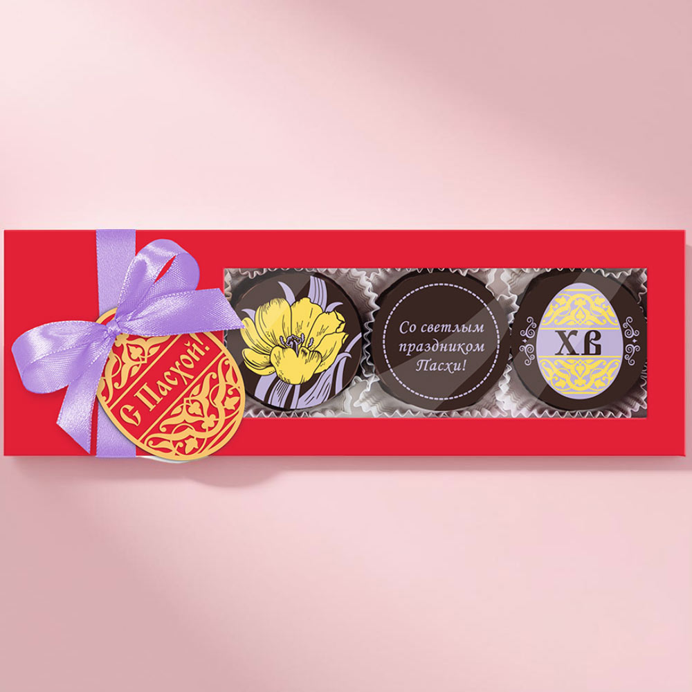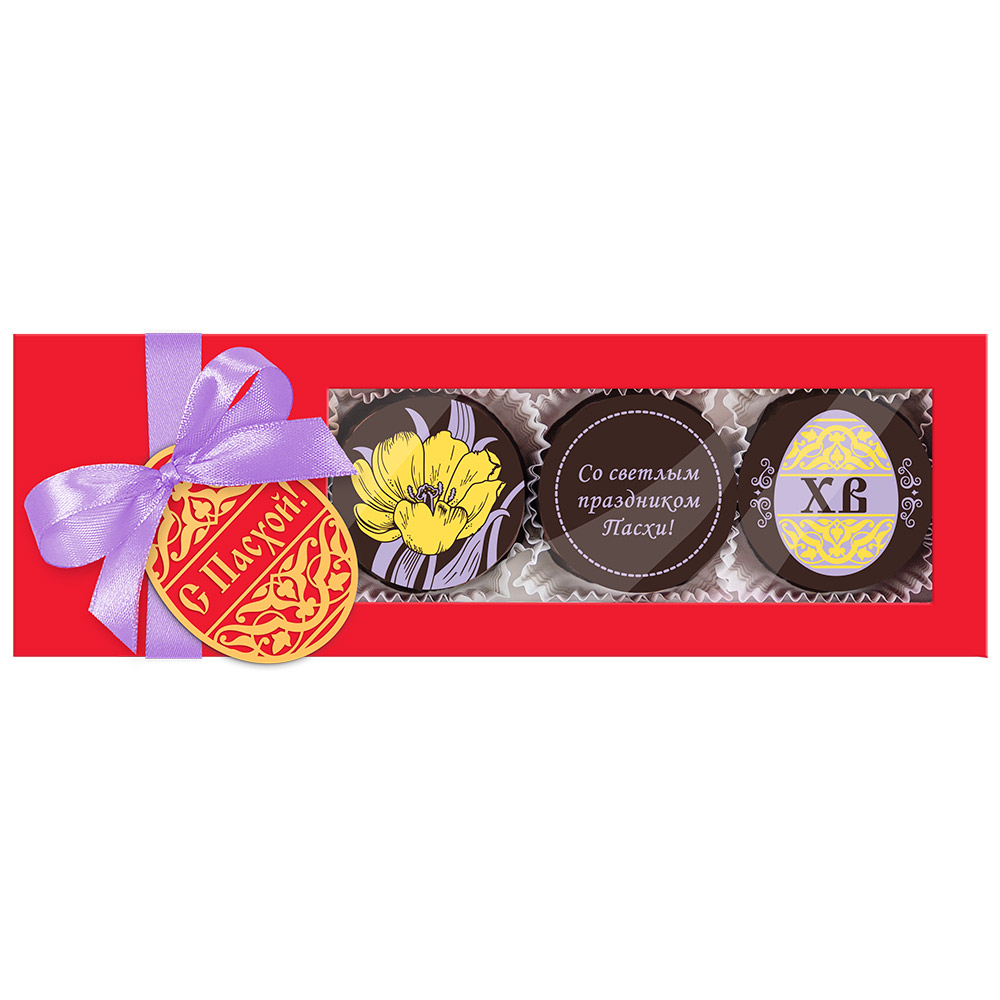 Состав: шоколадная масса – сахар, тертое какао, масло какао, какао-порошок, эмульгатор (лецитин соевый), натуральная ваниль; начинки – сахар, патока, молоко сгущенное (молоко цельное, сахар (сахароза, лактоза)), масло сладко-сливочное, какао-порошок, яичный белок, желирующий агент (агар), регулятор кислотности (кислота лимонная), эмульгатор (Е471), ароматизатор («Карамель»); декор – пищевые красители (свекольный концентрат, куркумин, Е132, Е171). Продукция производится на предприятии, где используются арахис, кунжут, орехи, яичные и молочные продукты, злаки, содержащие глютен.