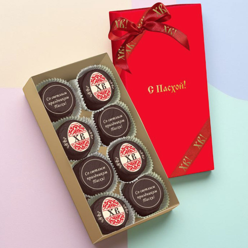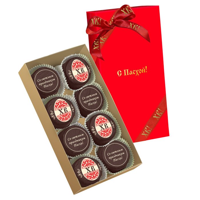 Состав: шоколадная масса – сахар, тертое какао, масло какао, какао-порошок, эмульгатор (лецитин соевый), натуральная ваниль; начинки – сахар, патока, молоко сгущенное (молоко цельное, сахар (сахароза, лактоза)), масло сладко-сливочное, яичный белок, желирующий агент (агар), регулятор кислотности (кислота лимонная), эмульгатор (Е471), ароматизатор («Ваниль»); декор – пищевые красители (куркумин, Е132, Е171), натуральный пищевой краситель (свекольный концентрат). Продукция производится на предприятии, где используются арахис, кунжут, орехи, яичные и молочные продукты, злаки, содержащие глютен.