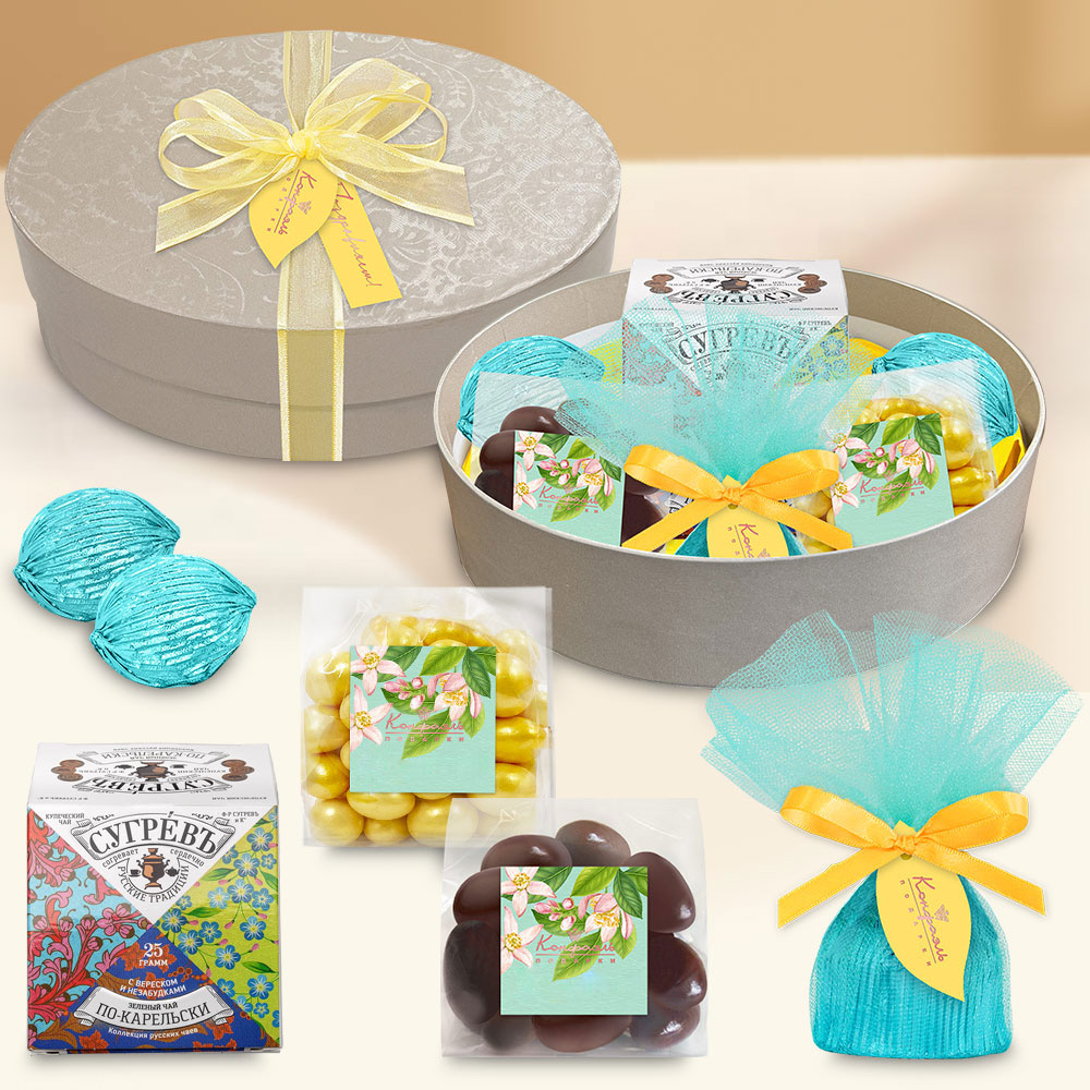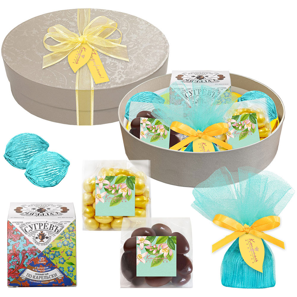 Подарочный набор: драже, конфеты глазированные, чай