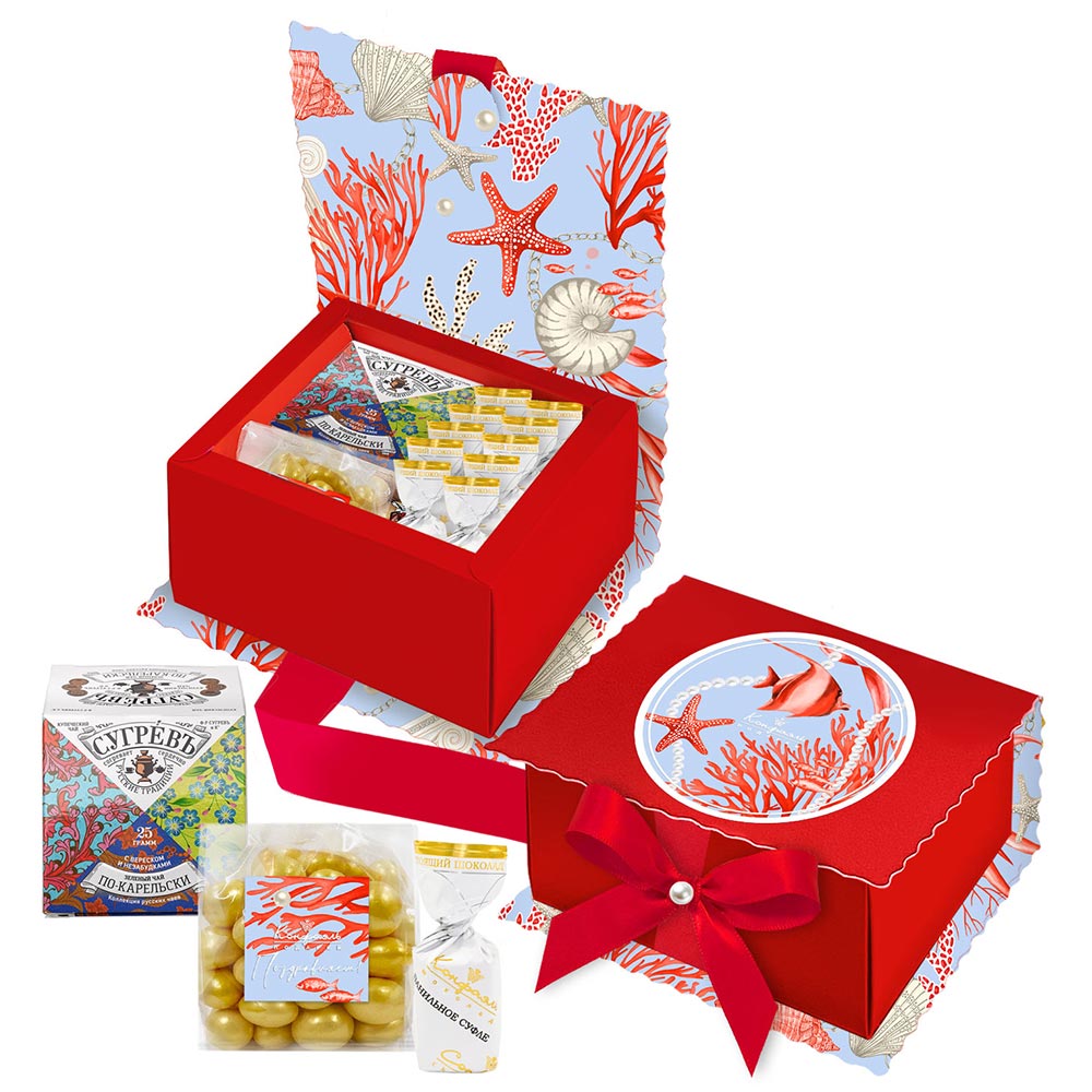 Подарочный набор: драже, шоколадные конфеты, чай 170г