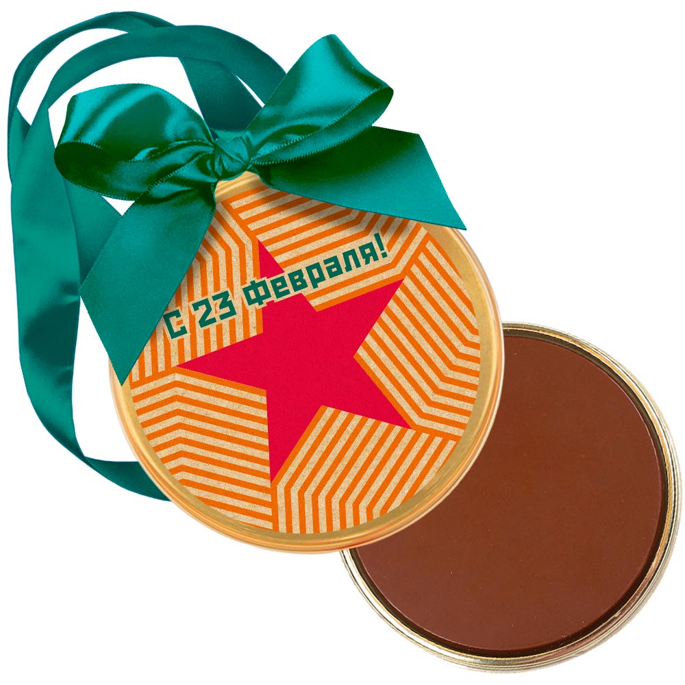 "С 23 февраля" медаль молочный шоколад (звезда)