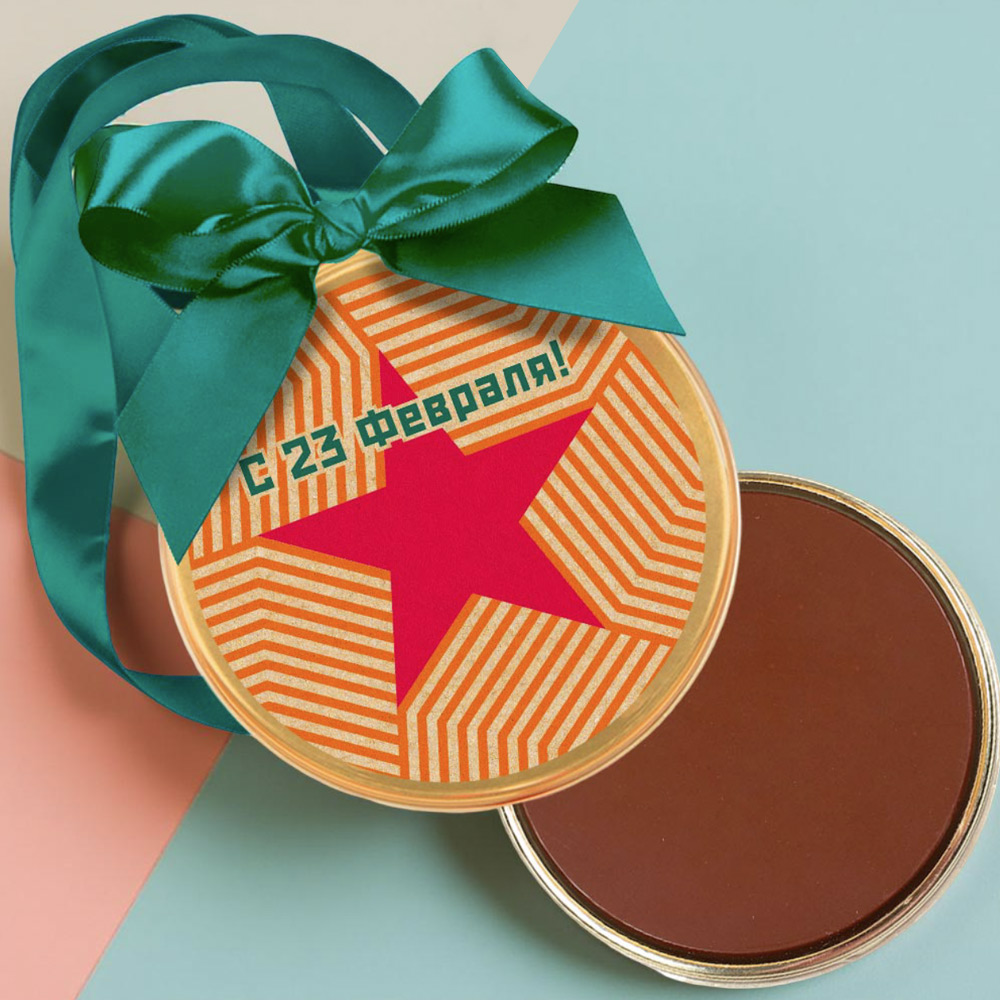 Вы хотите удивить друга, знакомого или коллегу подарком на 23 февраля? Медаль из нежнейшего молочного шоколада— универсальный подарок и восхитительное угощение, которое понравится любому мужчине. Этот сладкий комплимент обязательно принесет ему радость и наслаждение.
