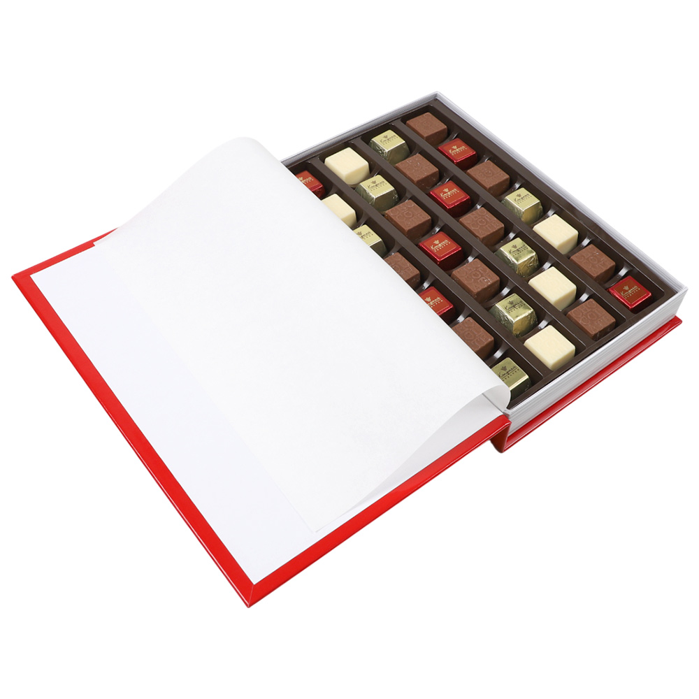 Cостав: шоколадные массы – сахар, масло какао, молоко цельное сухое, сухое обезжиренное молоко, какао тертое, какао-порошок, сыворотка молочная сухая, пахта сухая, молочный жир, паста ореховая из ядер фундука, эмульгаторы (соевый лецитин, Е476), соль, натуральная ваниль, ароматизаторы; начинки – сахар, патока, какао-масло, какао тертое, молоко сгущенное (молоко цельное, сахар (сахароза, лактоза)), жир специального назначения (масло ши, рапсовое масло, соевое масло, антиокислитель (лимонная кислота)), молоко сухое цельное, молоко сухое обезжиренное, белый шоколад (сахар, масло какао, сухое обезжиренное молоко, сухое цельное молоко, эмульгатор (лецитин соевый), экстракт ванили), масла растительные рафинированные дезодорированные (подсолнечное, рапсовое, оливковое; масло сладко-сливочное, молоко сухое обезжиренное), стабилизатор (мальтодекстрин), коньяк (дистиллят коньячный, вода, сахар, пищевой краситель (сахарный колер)), консервант (сорбиновая кислота), регулятор кислотности (лимонная кислота), эмульгаторы (лецитин соевый, Е471), ароматизаторы, пищевые красители (сахарный колер)