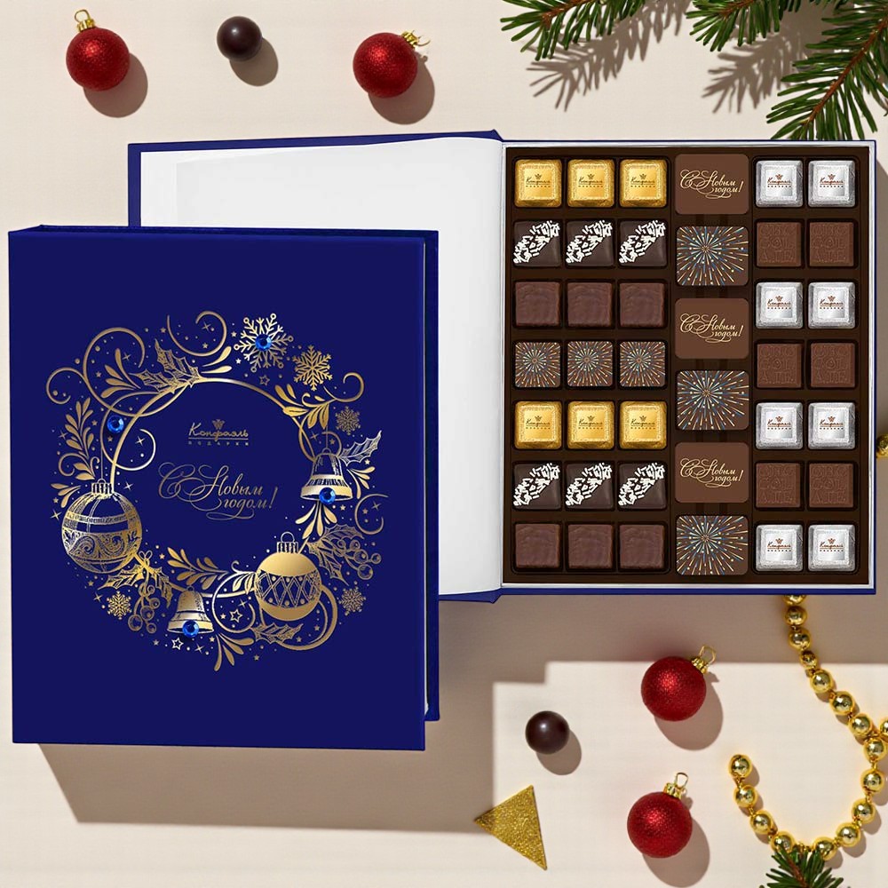 "С Новым годом" книга с конфетами ассорти, суфле, мягкий грильяж 395г