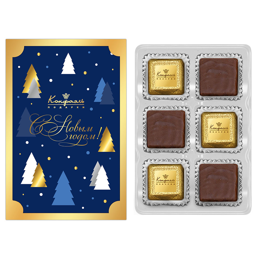 Праздник вкуса и радости уже близко! Удивите своих близких и друзей необычным и вкусным подарком – шоколадные конфеты ассорти с сливочной начинкой и ананасовое суфле в горьком шоколаде "С Новым годом"