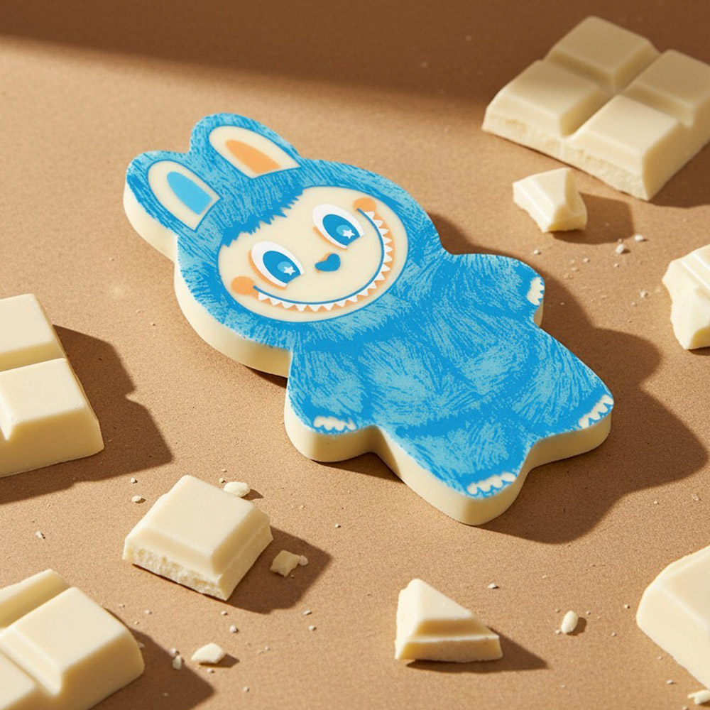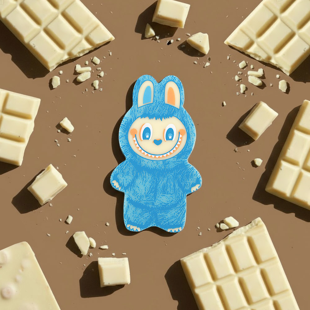 Голубой шоколадный «Лабубушка»: мини‑шоколад с декором — модный сладкий сюрприз!