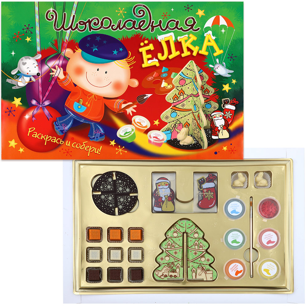 Елка -пластины из молочного и белого шоколада c декором.