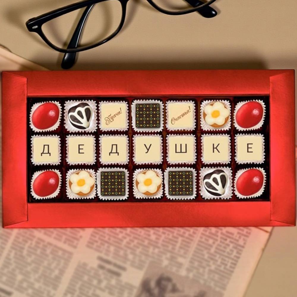 Шокотелеграмма "Дедушке", с вкуснейшими конфетами с желейными, сливочными и шоколадными начинками, послужит прекрасной причиной для очередных семейных посиделок за чашечкой чая.