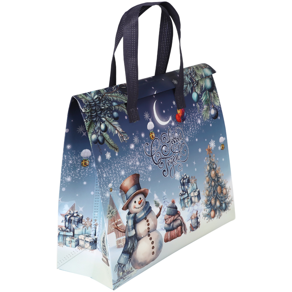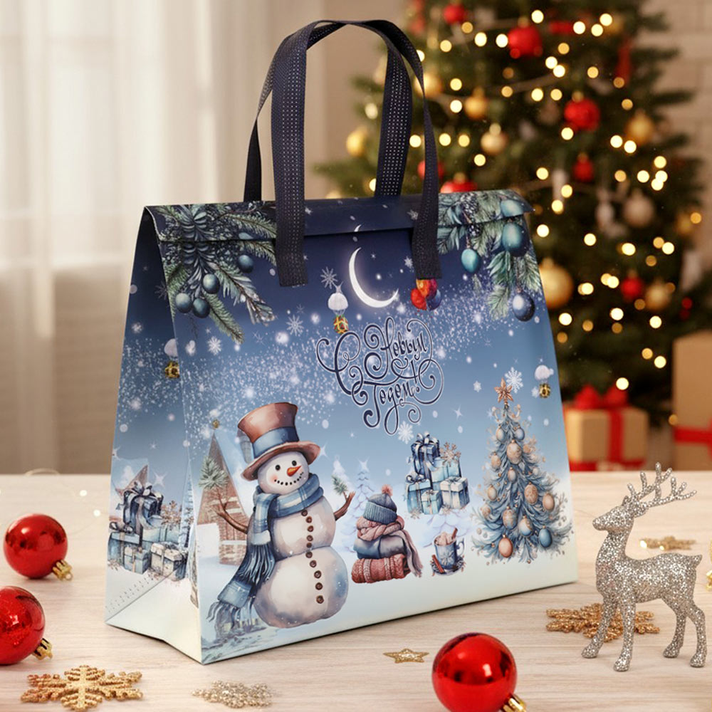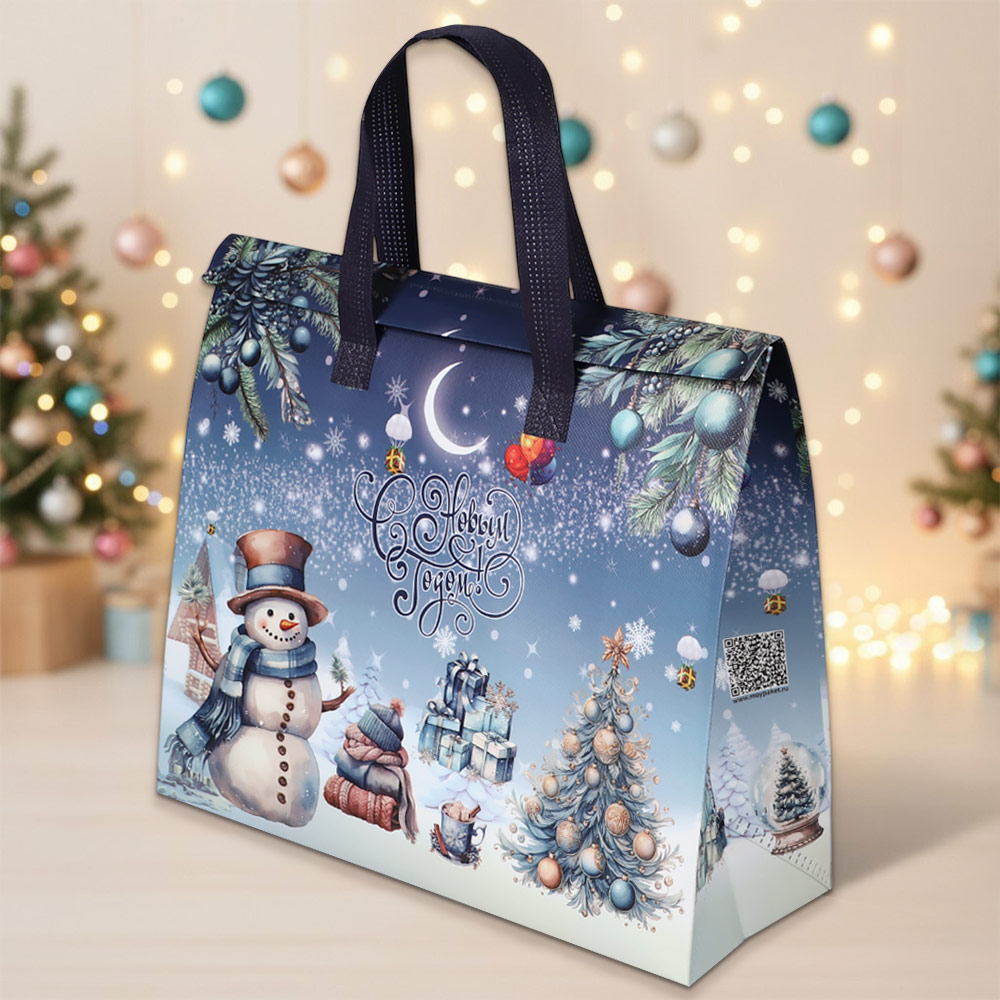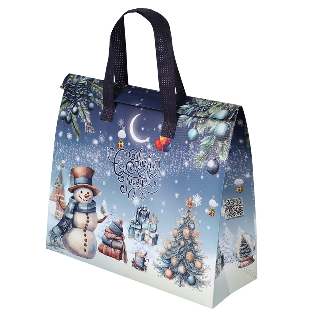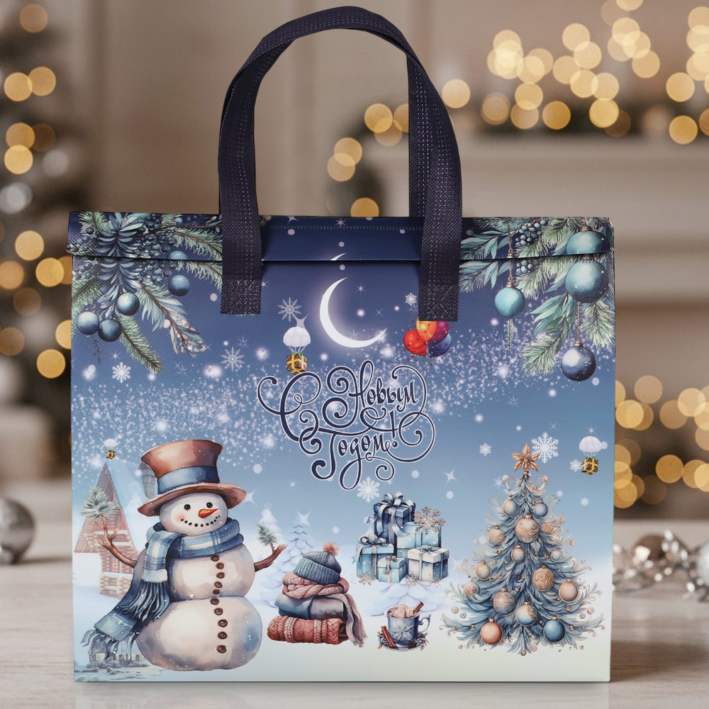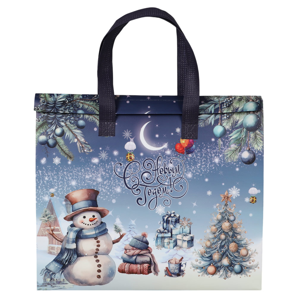 Термопакет синий "С Новым годом" 35х30х13 см (застежка липучка многоразовая)