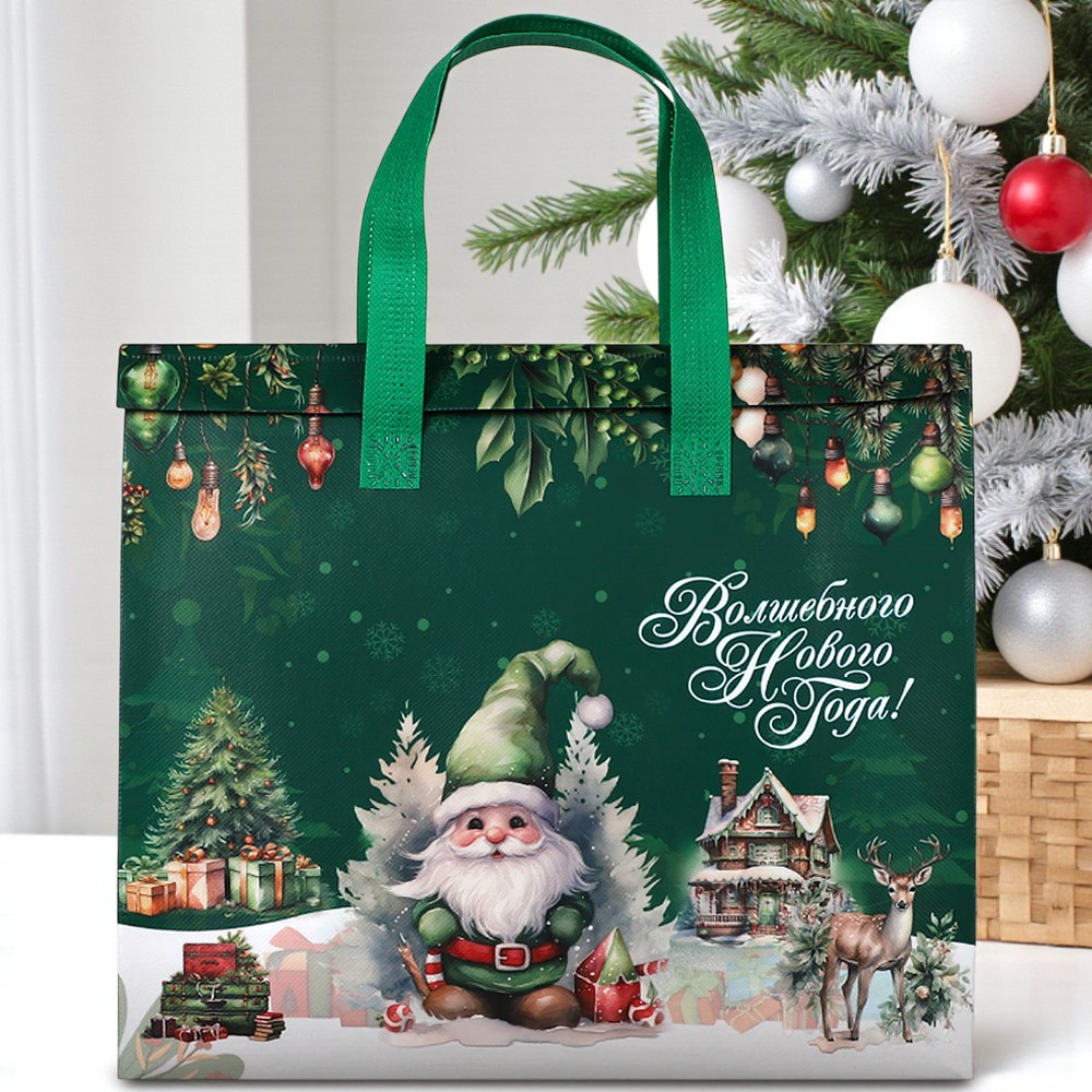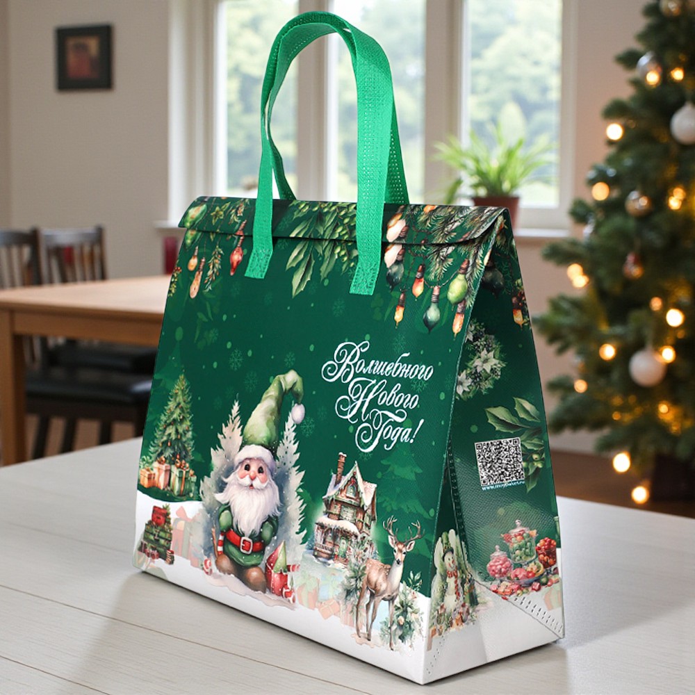Термопакет зеленый "С Новым годом" 35х30х13 см (застежка липучка многоразовая)