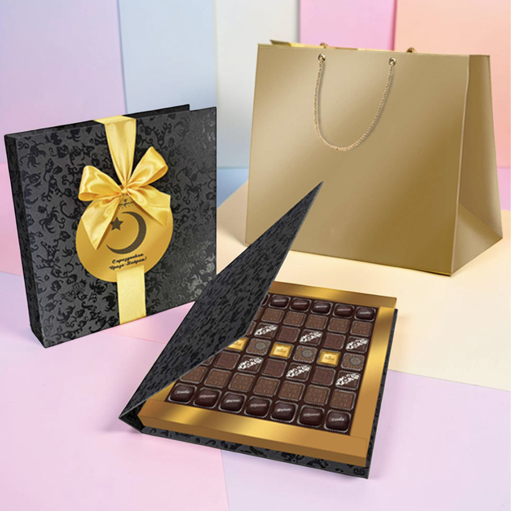 Шоколадные конфеты «Ассорти» со сливочными и шоколаданой начинками, с кремовой начинкой и декором ( "Шампанское и ананас"), конфеты «Суфле» в горьком шоколаде (ванильное),конфеты «Мягкий грильяж» в горьком шоколаде, конфеты «сухофрукты» в горьком шоколаде с декором(финик, слива, абрикос)