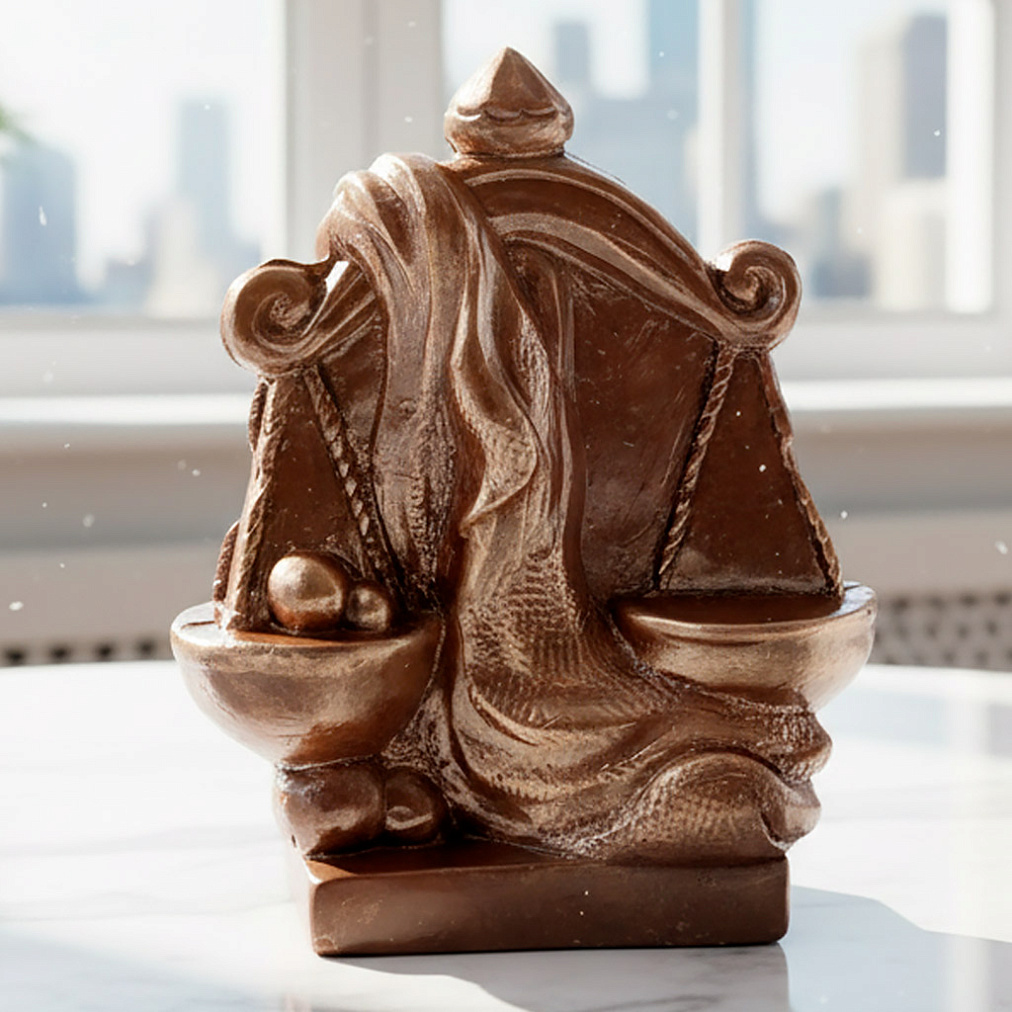 Скульптура из молочного шоколада «Весы» в достойной упаковке - универсальный подарок для всех представителей этого зодиакального знака.