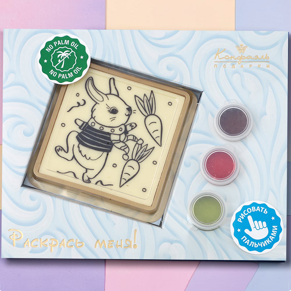 Кто сказал, что заяц обязательно должен быть только белого цвета!? Раскраска «Конфаэль» позволит всем сладкоежкам создать свой собственный сладкий тотем в любых возможных цветах. ...И немедленно съесть!