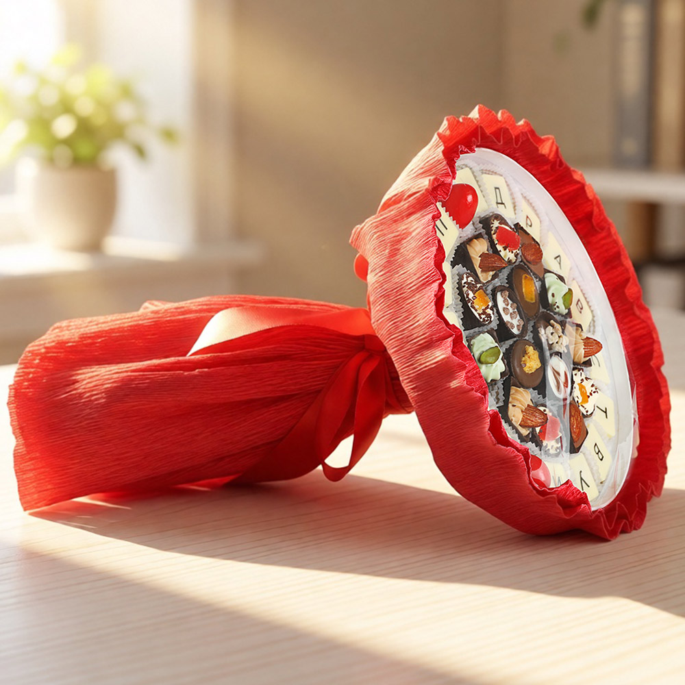 Букет с конфетами и драже «Здравствуй, школа!» - сладкий шедевр, объединивший креатив дизайнерского оформления десерта с высочайшим качеством настоящего шоколада, из которого изготовлены все лакомства.